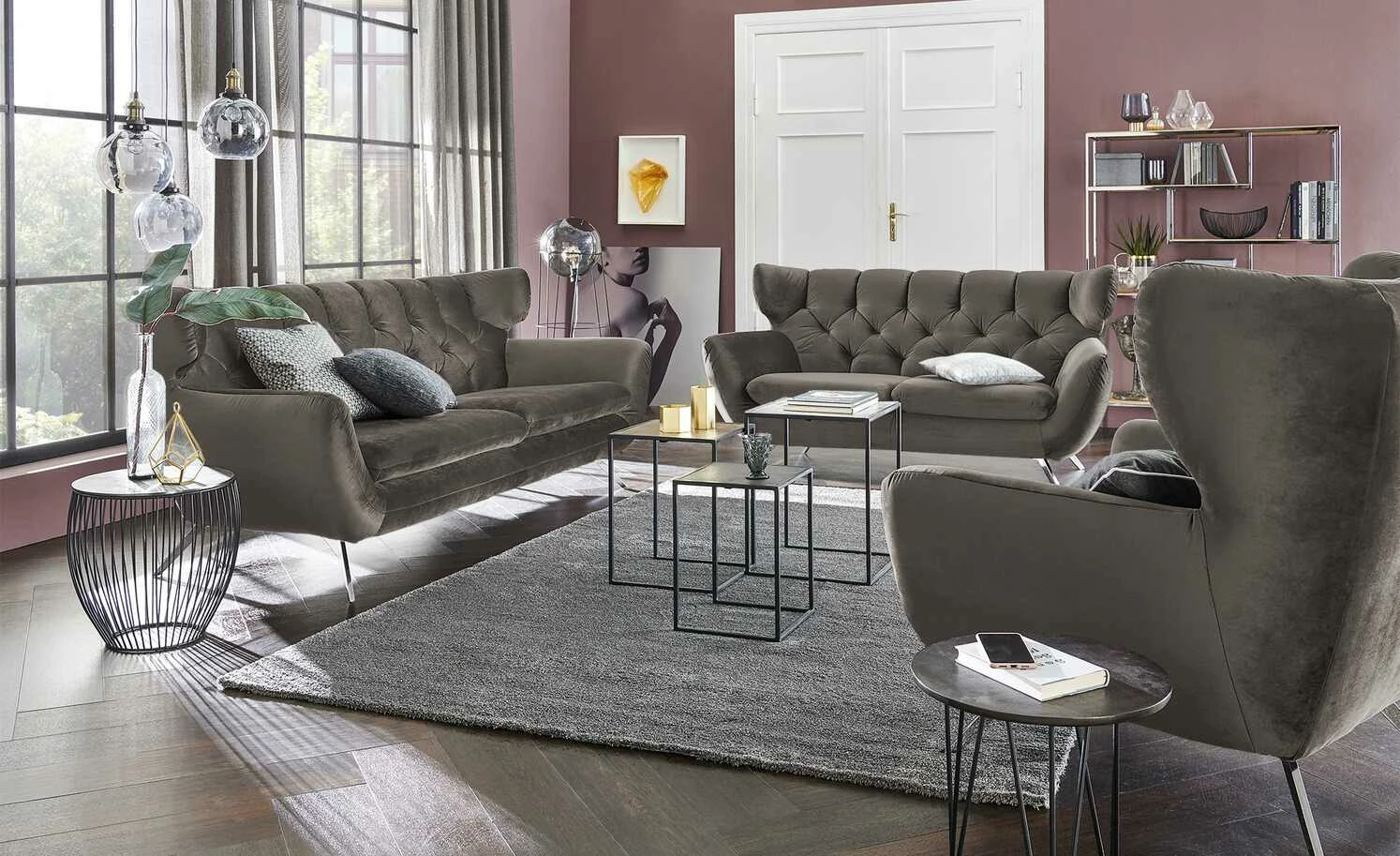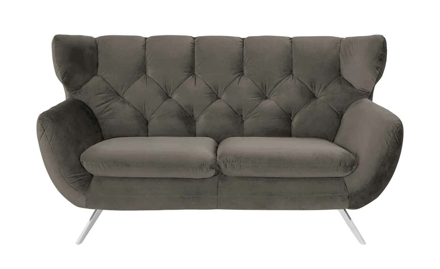Extravagantes Design kombiniert mit hohem Sitzkomfort: Das Sofa Caldara fällt besonders durch seine hohe gesteppte Rückenlehne und den Ohren auf. Caldara ist mit hochwertigem PUR-Schaum gepolstert, der Sitzbereich wird durch eine Wellenunterfederung zusätzlich gestützt. Das verhindert ein vorzeitiges Durchsitzen. Der samtig weiche Polyesterbezug umspannt das gesamte Sofa und harmoniert mit den Metallfüßen in Chrom-Optik. Sie können Caldara daher auch problemlos mittig im Raum platzieren. Übrigens: Das Sofa gibt es in verschiedenen Varianten und kann als Sitzgruppe arrangiert werden.