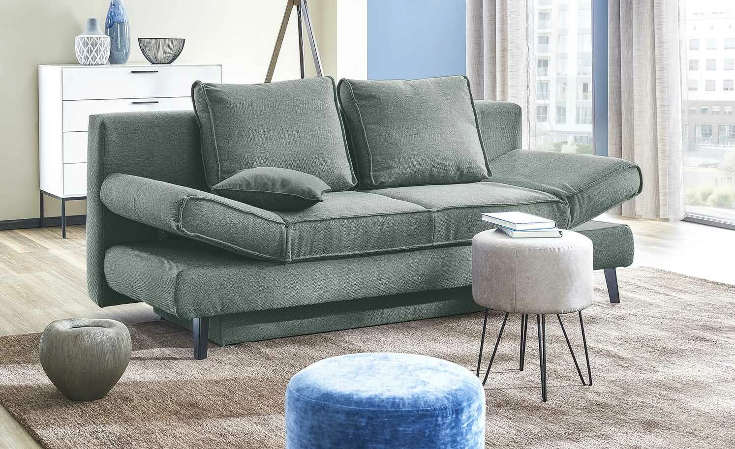 Das Sofa Sidney bietet die allerbesten Voraussetzungen zum entspannten Ausruhen oder Sitzen. Das Sofa ist dank der Armstützenverstellung extrem bequem und macht in seinem klassischen Design eine ausgezeichnete Figur. Der Überzug der Sitz- und Rückenfläche aus Flachgewebe rundet die Gesamtästhetik des Sofas gekonnt ab. Das Sofa lädt auch dank der Wellenfederkerne sowie der Polsterung aus Schaumstoff zum Wohlfühlen ein und lässt sich dank des echt bezogenen Rückens frei im Raum platzieren. Das Modell Sidney steht fest auf ästhetischen schwarzen Füßen aus Metall. Es wird durch die praktische Bettfunktion schnell zu einem komfortablen Schlafsofa, hat eine Sitzhöhe von 42 cm und lädt mit der Sitztiefe von 50 cm zum Entspannen ein. Dieses Sofa wird ganz schnell zur richtigen Oase der Entspannung, die Ihrem Zuhause optisch wie funktionell den letzten Schliff verleiht.