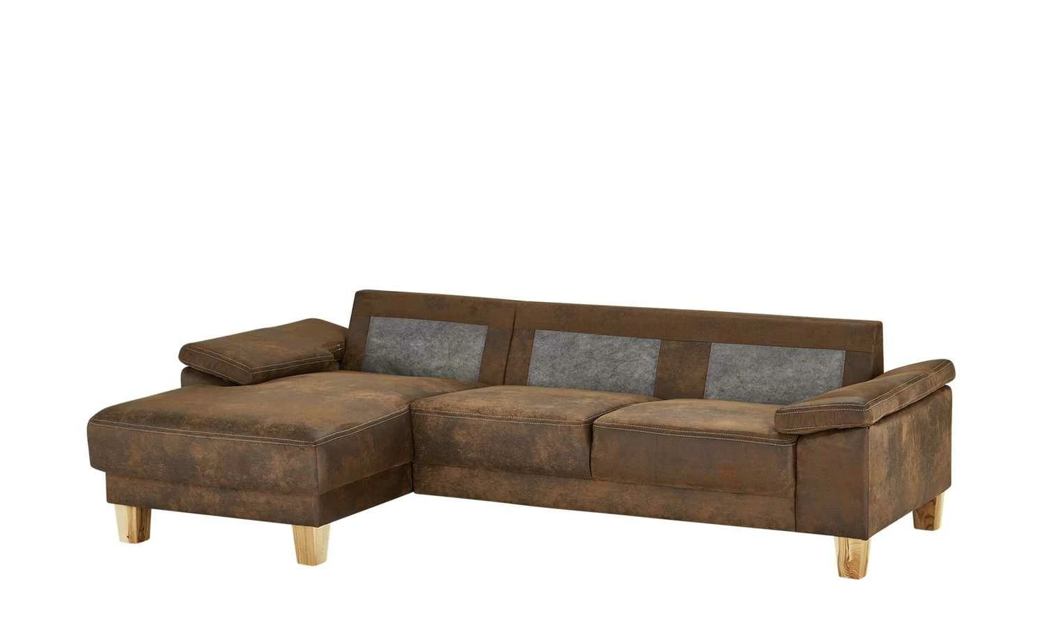 Das Ecksofa Atara fällt durch seine Raulederoptik mit Used-Effekten auf. Der Bezug besteht aus einer weichen Mikrofaser und umspannt die Couch auch auf der Rückseite. Helle Ziernähte setzen dekorative Kontrastakzente und rahmen das Sofa ein. Für einen natürlichen Touch sorgen die Füße aus massiver Esche. Atara hat eine angenehme Sitztiefe und ist zudem mit einer Ottomane ausgestattet. Sie erlaubt es Ihnen, auch mal die Beine hochzulegen. Die gemütliche Schaumstoffpolsterung wird von einer Nosag-Wellenunterfederung unterstützt, die für eine noch bessere Federung sorgt.