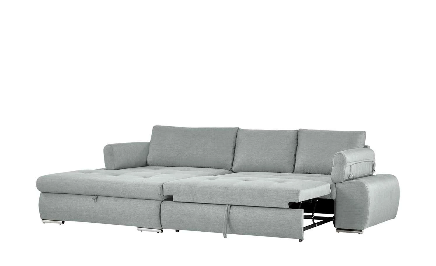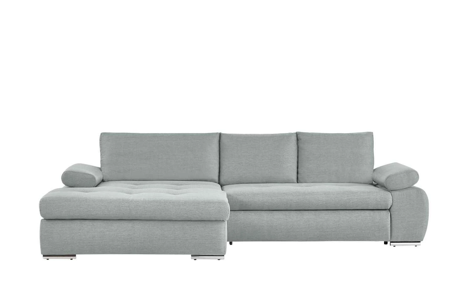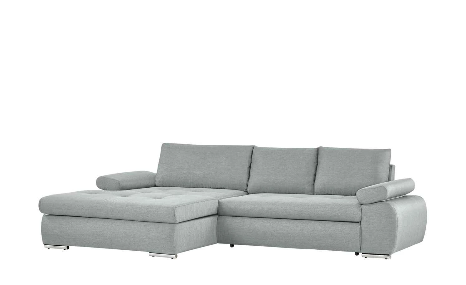 Das Ecksofa Ibby mit seiner weitläufigen L-Form bietet viel Platz zum Entspannen und Erholen. Die Sitzfläche ist mit einer Wellenunterfederung ausgestattet. Darauf befindet sich eine Polsterung aus Schaumstoff, die sich auch im Rückenbereich und den Armlehnen wiederfindet. Somit ist ein angenehmes Sitzen und Liegen gewährleistet. Für noch mehr Komfort sind drei Rückenkissen im Lieferumfang enthalten. Die Armlehnen lassen sich individuell verstellen. Ein weiteres Highlight von Ibby ist die Schlaffunktion: Ziehen Sie Ibby einfach zum Gästebett aus. Im großzügigen Bettkasten unter der Sitzfläche können Sie zum Beispiel Bettwäsche für den Besuch verstauen. Ibby ist rundum mit einem einfarbigen Stoff bezogen. So können Sie Ibby auch frei in den Wohnraum stellen. Wählen Sie aus verschiedenen strapazierfähigen Stoffbezügen und bestimmen Sie die Gestaltung Ihres Sofas ganz einfach selbst.