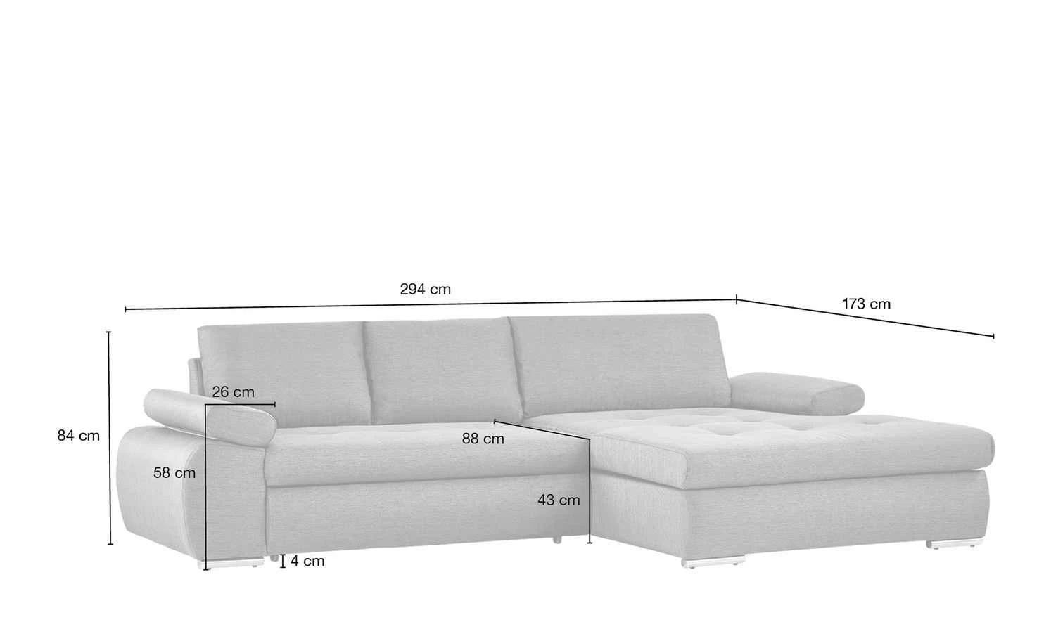 - Schenkelmaß 2: 294 cm