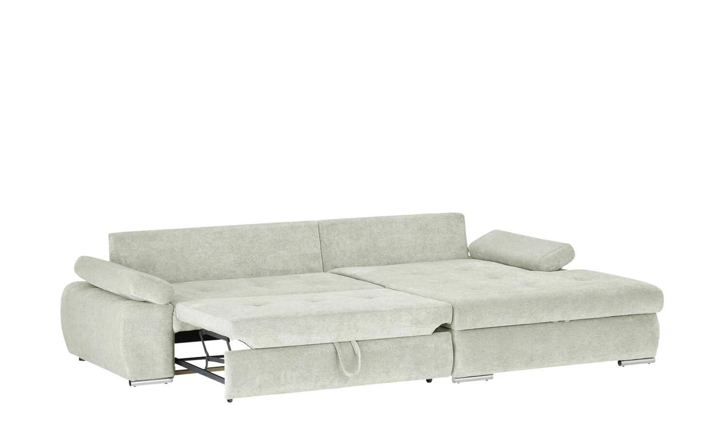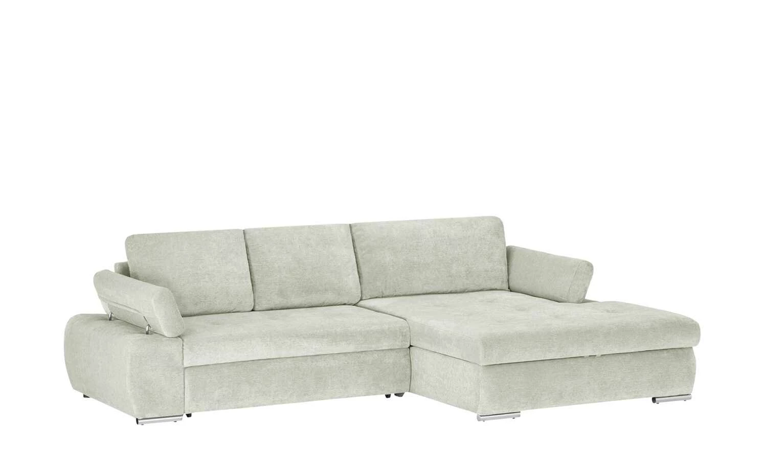 Das Ecksofa Ibby mit seiner weitläufigen L-Form bietet viel Platz zum Entspannen und Erholen. Die Sitzfläche ist mit einer Wellenunterfederung ausgestattet. Darauf befindet sich eine Polsterung aus Schaumstoff, die sich auch im Rückenbereich und den Armlehnen wiederfindet. Somit ist ein angenehmes Sitzen und Liegen gewährleistet. Für noch mehr Komfort sind drei Rückenkissen im Lieferumfang enthalten. Die Armlehnen lassen sich individuell verstellen. Ein weiteres Highlight von Ibby ist die Schlaffunktion: Ziehen Sie Ibby einfach zum Gästebett aus. Im großzügigen Bettkasten unter der Sitzfläche können Sie zum Beispiel Bettwäsche für den Besuch verstauen. Ibby ist rundum mit einem einfarbigen Stoff bezogen. So können Sie Ibby auch frei in den Wohnraum stellen. Wählen Sie aus verschiedenen strapazierfähigen Stoffbezügen und bestimmen Sie die Gestaltung Ihres Sofas ganz einfach selbst.
