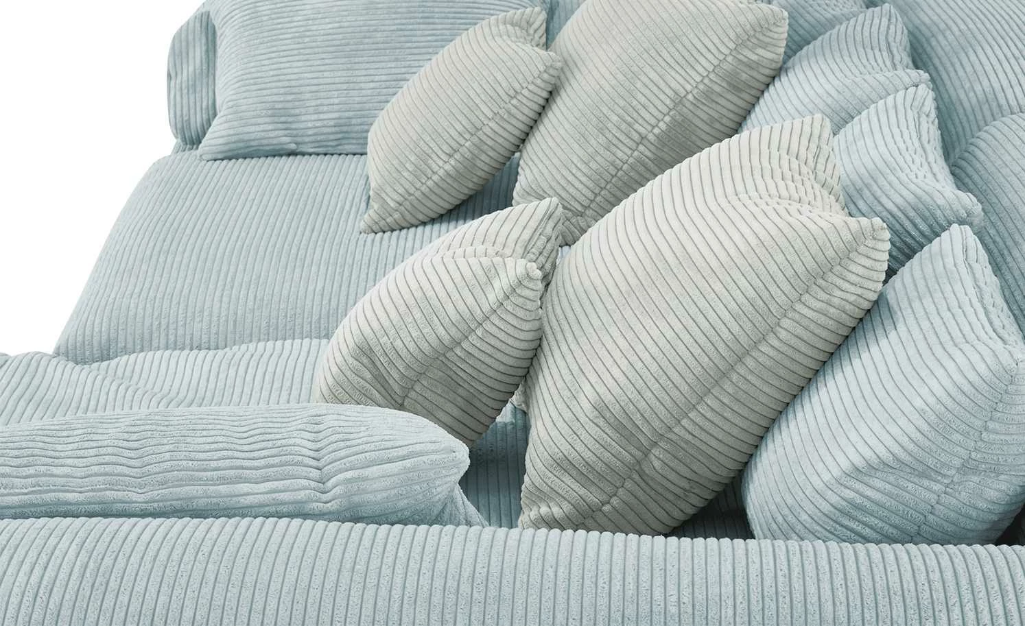 - Lieferumfang / mitgeliefertes Zubehör: 6 mittlere, 2 große, 2 kleine und 2 Seitenkissen
