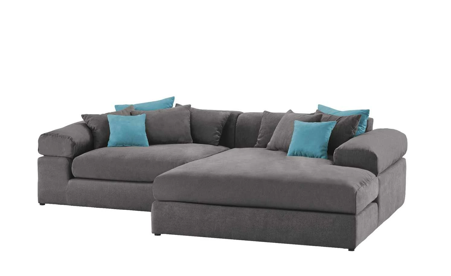 Das Ecksofa Lianea ist eine wahre Wohlfühl-Oase. Die komfortable Schaumstoffpolsterung und der weiche Stoff laden zum gemütlichen Beisammensein ein. Auch die Rückseite des Sofas ist bezogen: Lianea kann daher auch mittig im Raum platziert werden. Besonders gemütlich wird es mit den zwölf Kissen, die im Lieferumfang enthalten sind. Das Ecksofa gibt es in zahlreichen Farbvarianten und passt daher in nahezu jedes Wohnzimmer.