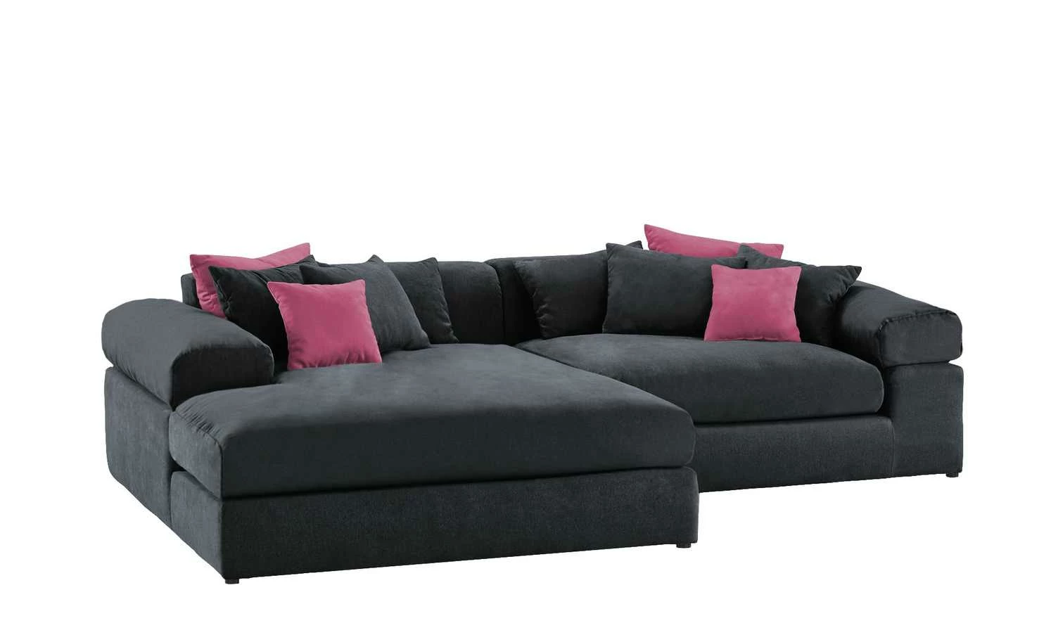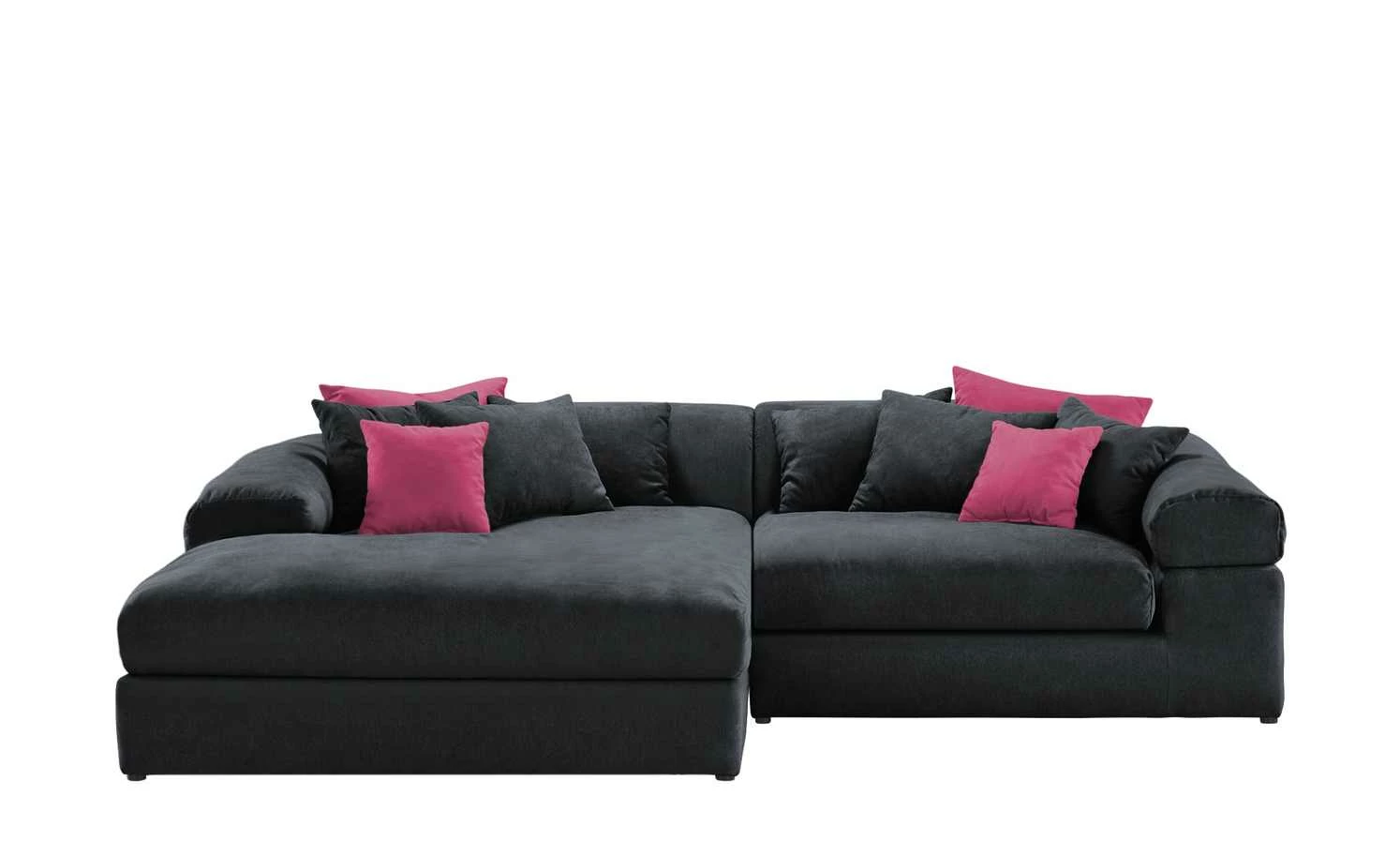 Das Ecksofa Lianea ist eine wahre Wohlfühl-Oase. Die komfortable Schaumstoffpolsterung und der weiche Stoff laden zum gemütlichen Beisammensein ein. Auch die Rückseite des Sofas ist bezogen: Lianea kann daher auch mittig im Raum platziert werden. Besonders gemütlich wird es mit den zwölf Kissen, die im Lieferumfang enthalten sind. Das Ecksofa gibt es in zahlreichen Farbvarianten und passt daher in nahezu jedes Wohnzimmer.