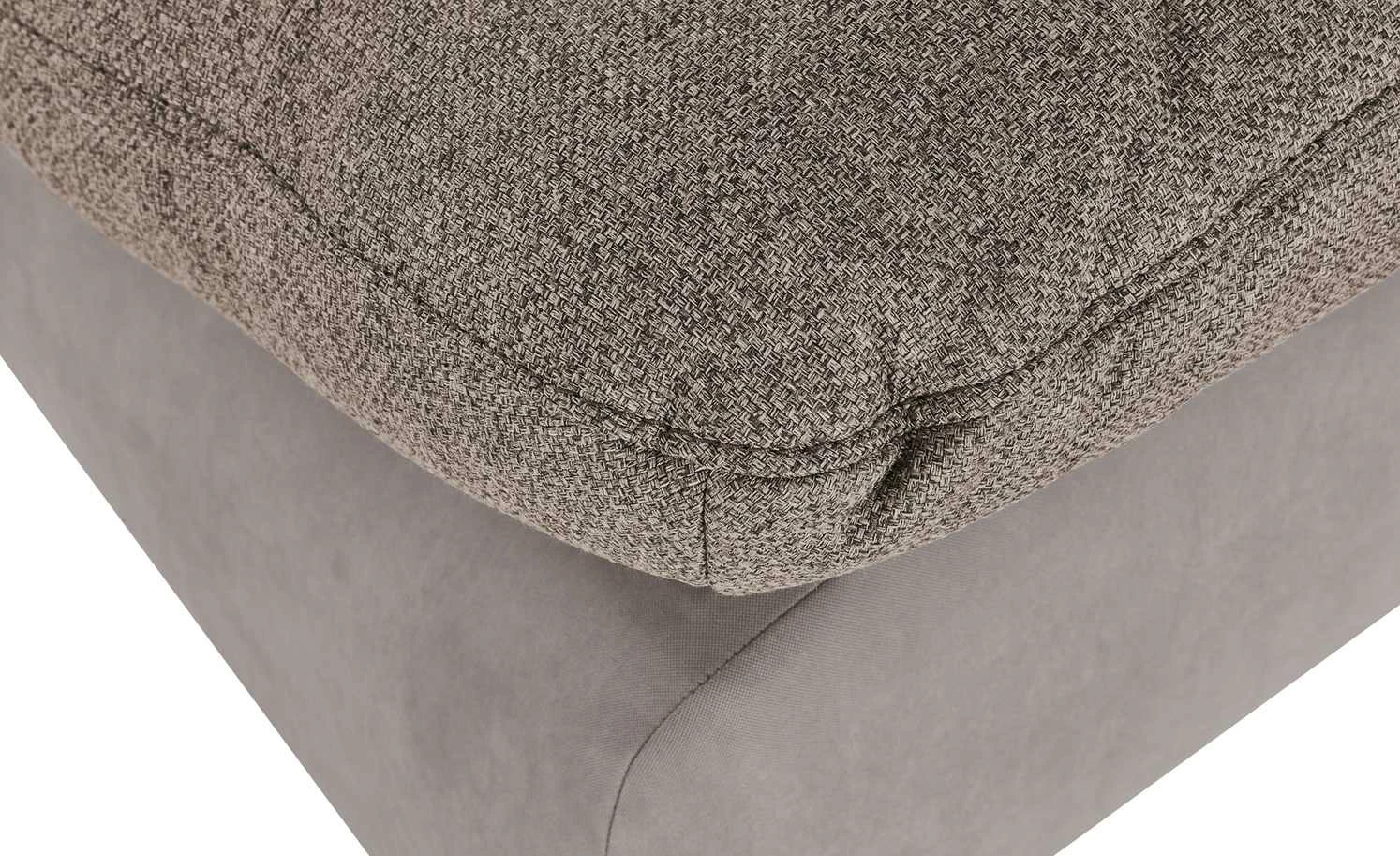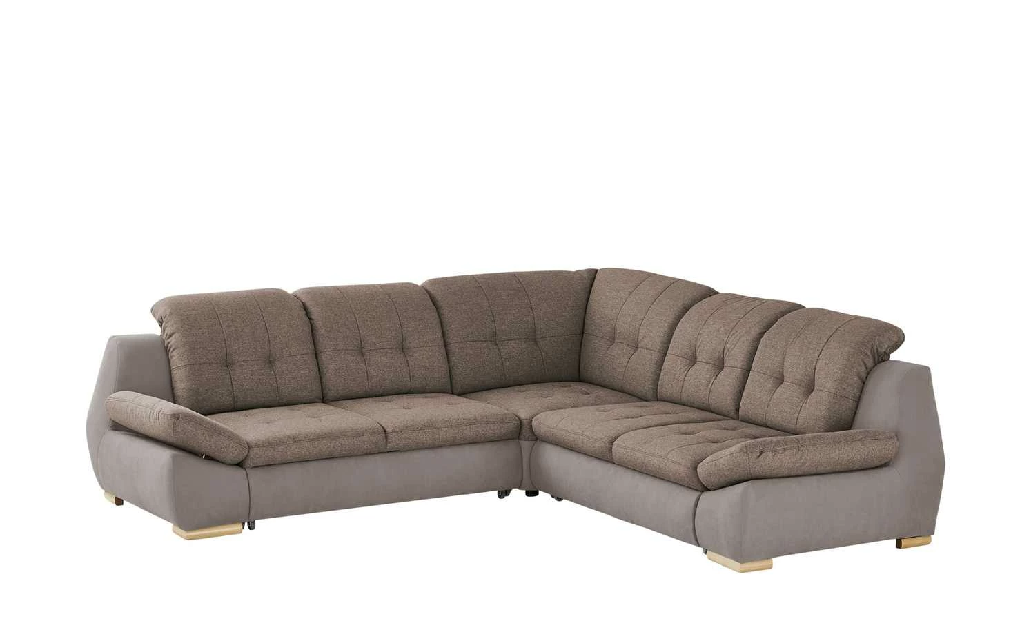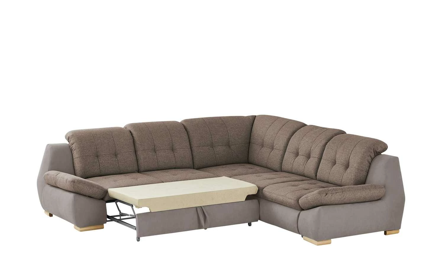 Das Ecksofa Lilli punktet mit seinen tollen Komfortausstattungen. Sitz, Rücken und Armlehnen sind mit einem hochwertigen Federkern und zusätzlichem Polyätherschaum gepolstert. Die Rückenlehne hat eine angenehme Höhe und ist leicht schräg, so dass Sie noch bequemer Sitzen können. Außerdem lassen sich die Kopfteile von zwei Sitzen verstellen. Beide Armlehnen sind mit einer Klappfunktion ausgestattet. Lilli kann mit wenigen Handgriffen zum Gästebett ausgezogen werden. Unter der Sitzfläche befindet sich ein ausziehbarer Bettkasten, der praktischen Stauraum bietet. Die Couch ist zweifarbig gestaltet. Während der Korpus mit einem Flachgewebe bezogen ist, auch auf der Rückseite, setzt sich die Sitz- und Rückenfläche vorne mit ihrem Webstoff ab.