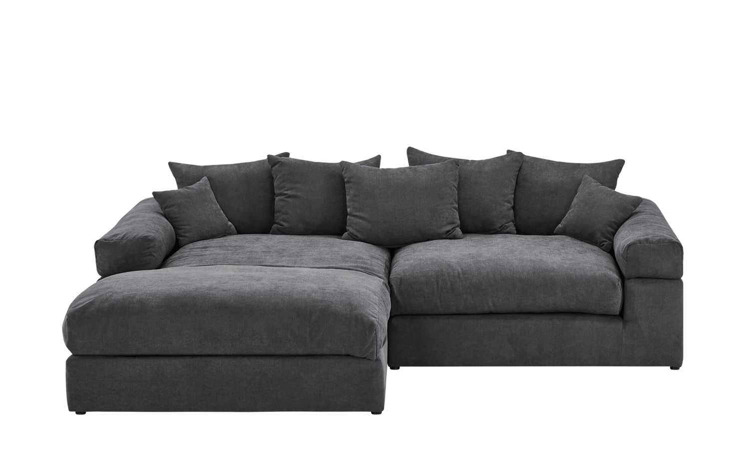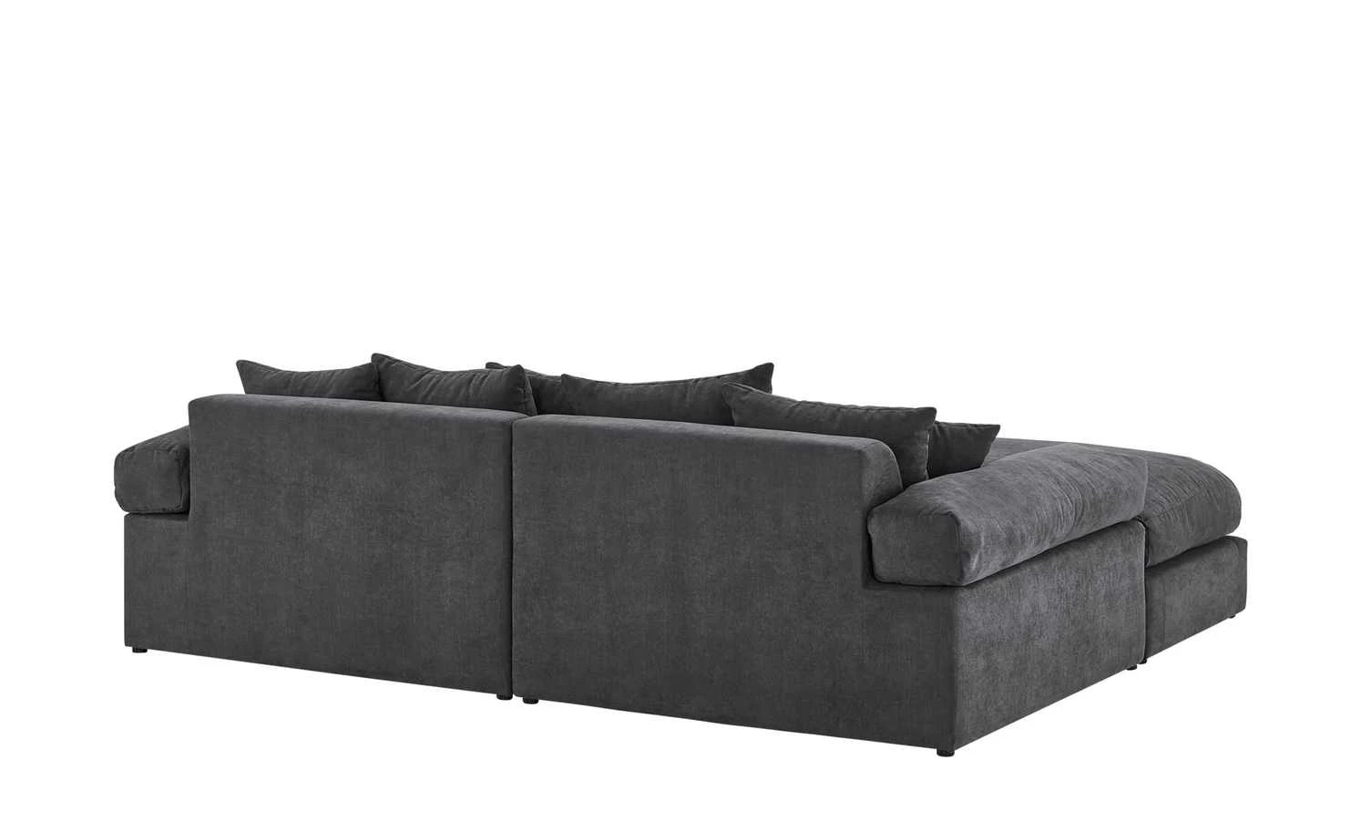Das Ecksofa Lionore von smart strahlt Gemütlichkeit aus und bietet selbstverständlich auch ein gemütliches Sitzgefühl. Das kommt in erster Linie von der dicken, komfortablen Polsterung des Sofas. Lionore ist L-förmig designt und bietet Ihnen deshalb die Möglichkeit auch mal die Beine hochzulegen. Die extra tiefe Sitztiefe von 79 bzw. 102 Zentimetern bei der Ottomane unterstützt das bequeme Sitzerlebnis. Durch die insgesamt sieben Kissen in unterschiedlicher Größe können Sie die Tiefe der Sitze individuell regulieren. Die Couch ist komplett mit einem weichen Flachgewebe bezogen. Das gibt Ihnen die Möglichkeit, Lionore auch mittig in den Raum zu stellen.