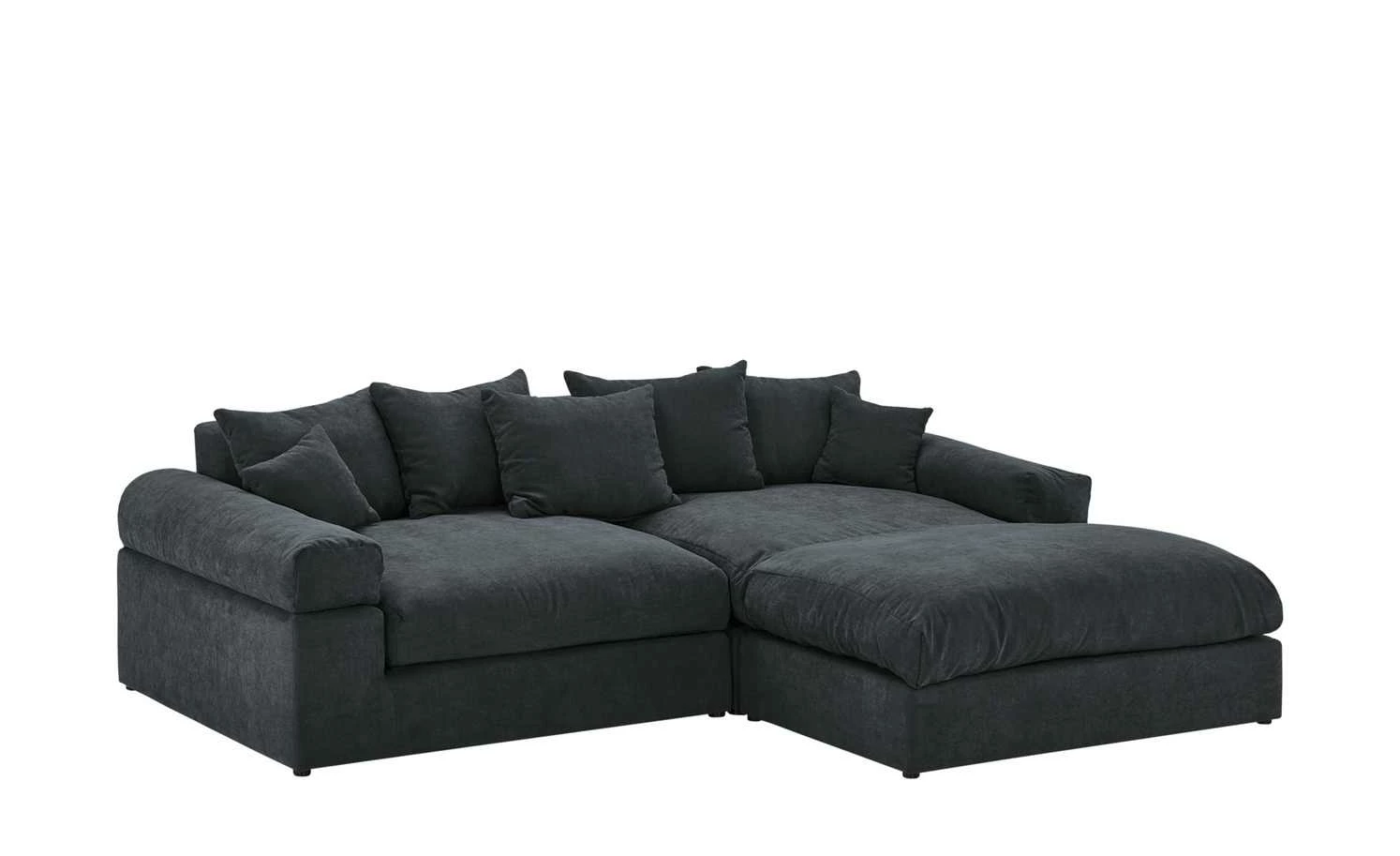 Das Ecksofa Lionore von smart strahlt Gemütlichkeit aus und bietet selbstverständlich auch ein gemütliches Sitzgefühl. Das kommt in erster Linie von der dicken, komfortablen Polsterung des Sofas. Lionore ist L-förmig designt und bietet Ihnen deshalb die Möglichkeit auch mal die Beine hochzulegen. Die extra tiefe Sitztiefe von 79 bzw. 102 Zentimetern bei der Ottomane unterstützt das bequeme Sitzerlebnis. Durch die insgesamt sieben Kissen in unterschiedlicher Größe können Sie die Tiefe der Sitze individuell regulieren. Die Couch ist komplett mit einem weichen Flachgewebe bezogen. Das gibt Ihnen die Möglichkeit, Lionore auch mittig in den Raum zu stellen.