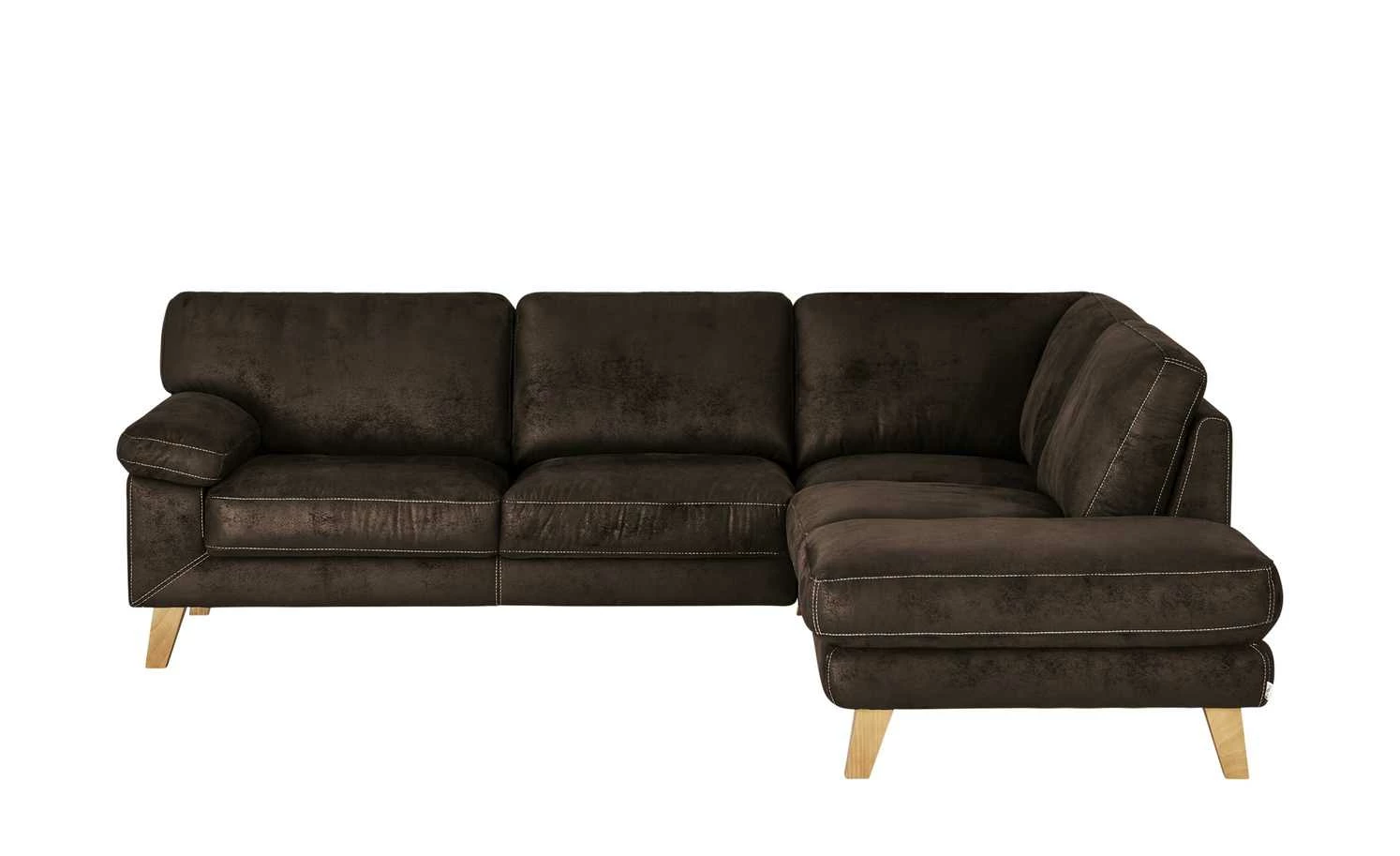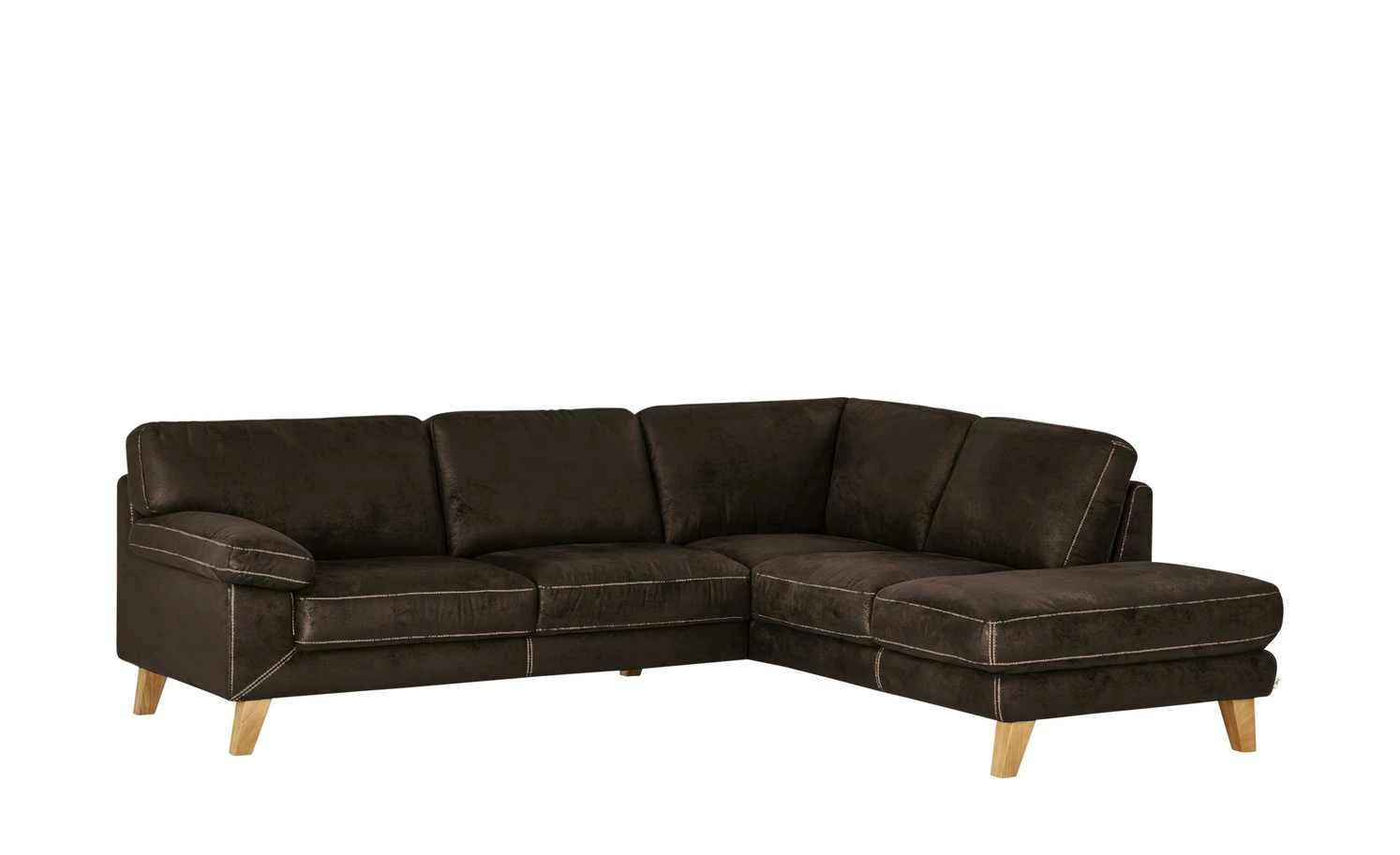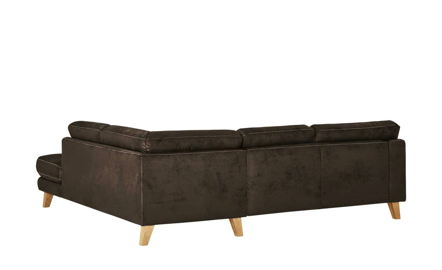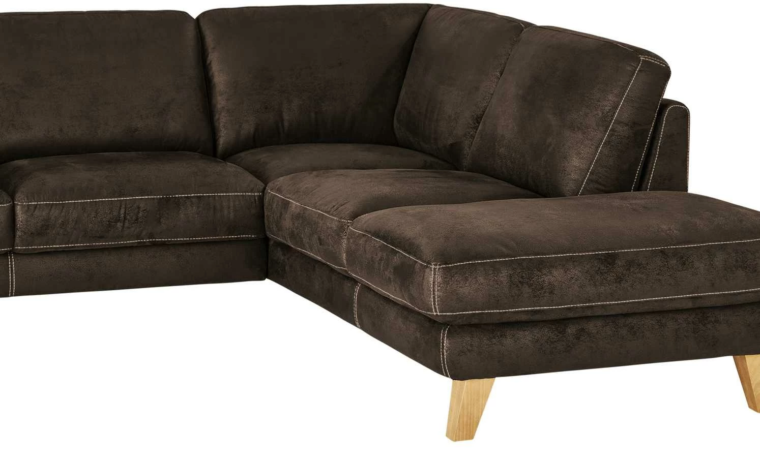 Dank seiner hochwertigen Polsterung ist das Ecksofa Tine eine echte Komfortoase. Tine ist mit einem Federkern ausgestattet, der nicht nur bequem, sondern auch formstabil und langlebig ist. Der Federkern wird von einer Schaumstoffpolsterung und einer Wellenunterfederung im Sitzbereich ergänzt. Das unterstützt die Abfederung und erhöht somit den Sitzkomfort. Tine ist mit einer Mikrofaser in Lederoptik bezogen. Dabei umschließt der Originalbezug auch die gesamte Rückseite, so dass die Couch auch mittig im Raum aufgestellt werden kann. Stabile Füße aus massivem Buchenholz sorgen für einen guten Stand.