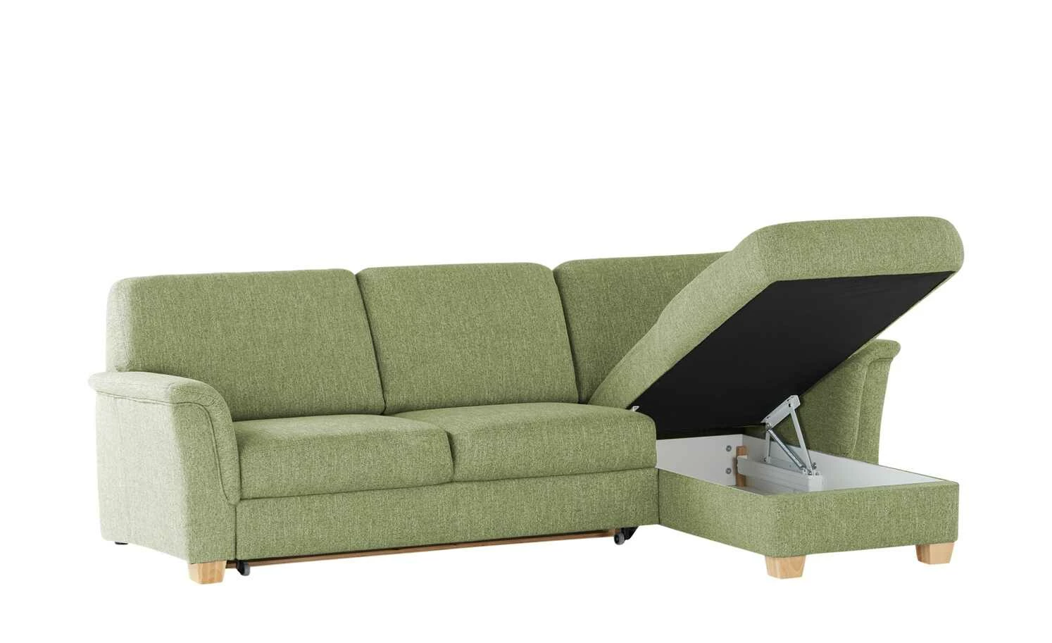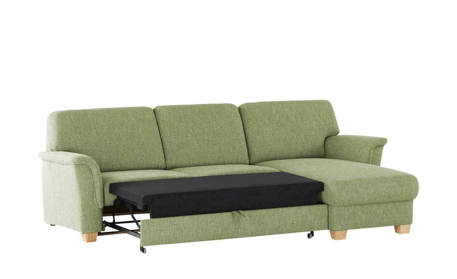 Mit dem Sofa nutzen Sie Ihr Zuhause hervorragend aus. Das Sofa überzeugt in Qualität der Marke smart und steht damit für einzigartiges Sitzvergnügen und geschmackvolle Gestaltung. Der Überzug der Sitz- und Rückenfläche besteht aus Flachgewebe und vermittelt damit ein vortreffliches Sitzgefühl. Das Sofa steht fest auf ästhetischen buchenfarbenen Füßen aus Massivholz. Es dient durch den im Lieferumfang enthaltenen Bettkasten als Stauraummöbel und lässt sich aufgrund der praktischen Bettfunktion in ein komfortables Schlafsofa umwandeln. Das Sofa hat eine Ottomane auf der rechten Seite und nimmt insgesamt 90 cm ein. Das Sofa gewährt Ihnen Platz zum Fernsehen, Lesen oder Die-Seele-baumeln-lassen.