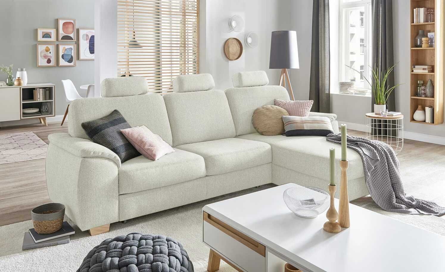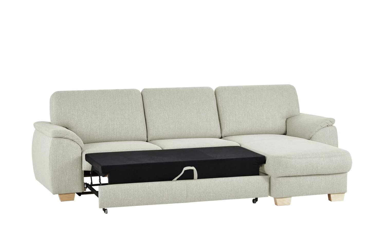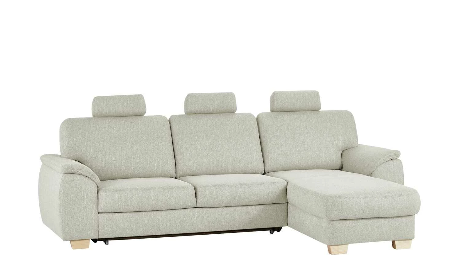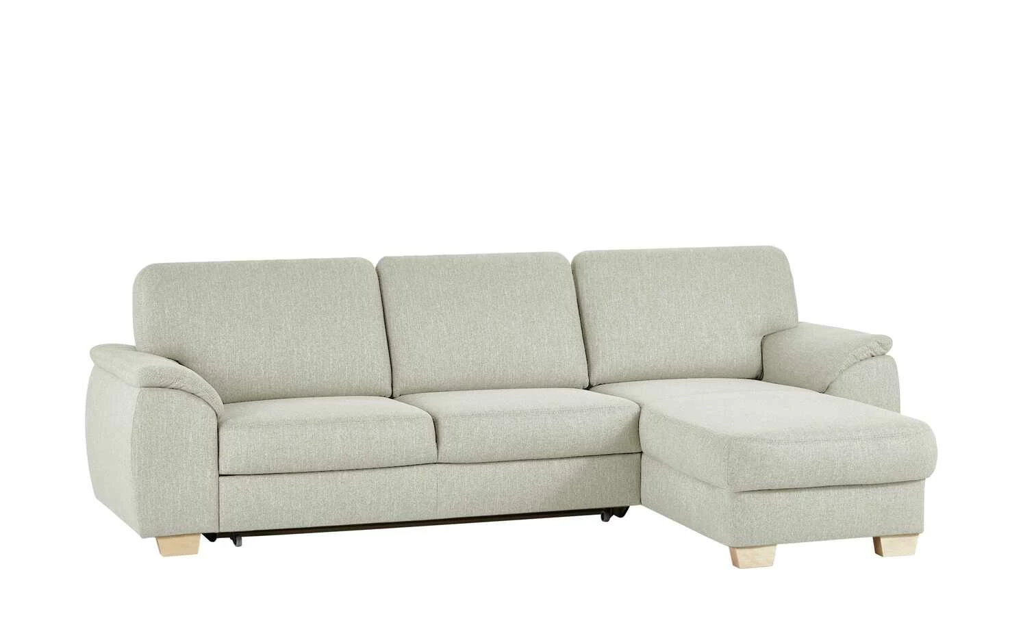 Das Ecksofa Valencia von smart ist in vielfacher Hinsicht praktisch. Es ist eine bequeme Couch und lässt sich auch zum Bett ausziehen. Die Schlaffunktion macht es möglich. Dank des Federkerns sitzen und liegen Sie richtig bequem. Ein Bettkasten gibt Ihnen die Möglichkeit Kissen und Decken zu verstauen. Der silbergrau melierte Webstoff-Bezug umspannt die Couch komplett – auch auf der Rückseite. So haben Sie die Möglichkeit das Sofa nicht nur direkt vor die Wand, sondern auch mittig in den Raum zu stellen. Die Massivholzfüße in Buche Natur sorgen für einen guten Stand. Und harmonieren mit dem Silbergrau des Bezuges.