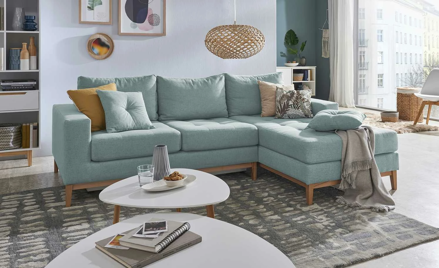 Der skandinavische Stil ist modern und zurückhaltend, aber auch sehr gemütlich. Auch das Ecksofa Vivien von smart greift diesen trendy Look auf. Hinzu kommen natürliche Akzente durch das Gestell in massiver Buche Natur. Vivien ist komfortabel gepolstert und wird mit weichen Rücken- und Zierkissen geliefert. Durch die L-Form haben Sie auch die Möglichkeit mal die Beine hochzulegen und alle Viere von sich zu strecken. Der melierte Bezug fühlt sich angenehm an. Er umspannt das Sofa komplett. Deshalb haben Sie die Möglichkeit, die Couch flexibel in Ihrem Wohnzimmer zu platzieren. Ein weiteres Highlight: Sie können Vivien zum Gästebett ausziehen. Es verfügt über eine Liegefläche von 130 x 205 cm. Ein geräumiger Bettkasten ist unter der Sitzfläche zu finden.