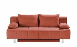 Für Gästezimmer oder Studentenwohnung ist das Schlafsofa Alina einfach ideal. Während Sie Alina tagsüber als Couch nutzen, wird es nachts zum Bett. Dank Federkern und Lattenrost hat Alina Dauerschläferqualität. Das heißt, dass Sie das Schlafsofa auch ständig als Bett verwenden können. Wenn Alina als Sofa genutzt wird, dann können Sie Ihr Kopfkissen und die Bettdecke im integrierten Bettkasten verschwinden lassen. Das Sofa ist komplett mit Webstoff umhüllt und kann deshalb auch mitten im Zimmer platziert werden. Der orange Farbton lässt die Couch besonders peppig aussehen.