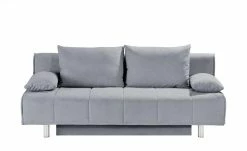 Für Gästezimmer oder Studentenwohnung ist das Schlafsofa Alina einfach ideal. Während Sie Alina tagsüber als Couch nutzen, wird es nachts zum Bett. Dank Federkern und Lattenrost hat Alina Dauerschläferqualität. Das heißt, dass Sie das Schlafsofa auch ständig als Bett verwenden können. Wenn Alina als Sofa genutzt wird, dann können Sie Ihr Kopfkissen und die Bettdecke im integrierten Bettkasten verschwinden lassen. Das Sofa ist komplett mit Webstoff umhüllt und kann deshalb auch mitten im Zimmer platziert werden. Die silbergraue Farbe lässt die Couch besonders edel und stylisch aussehen.