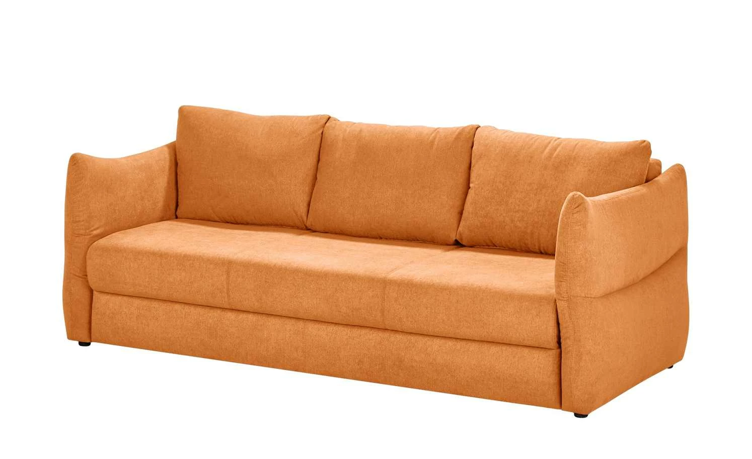 Mit seinem modernen und pfiffigen Look peppt das Sofa Franziska jedes Wohnzimmer auf. Ein besonderer Hingucker sind die außergewöhnlich geformten Armlehnen, die Sie auch verstellen können. Bei abgeklappten Armlehnen ist das Sofa 262 Zentimeter lang. Franziska ist weich gepolstert und bietet damit viel Sitz- und Liegekomfort. Die Couch ist rundum mit einem weichen Flachgewebe bezogen. Deshalb können Sie Franziska auch gerne mitten in den Raum stellen. Sehr praktisch ist die Schlaffunktion, die Franziska mit ein paar Handgriffen zum bequemen Gästebett macht. Im Bettkasten unter der Sitzfläche können Sie Bettwäsche ideal verstauen. Franziska gibt es in vielen trendigen Farben, da finden Sie sicherlich die Passende für Ihr Wohnzimmer.