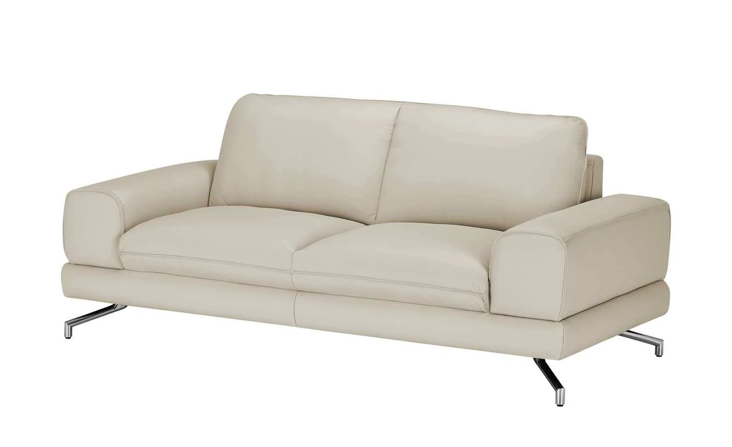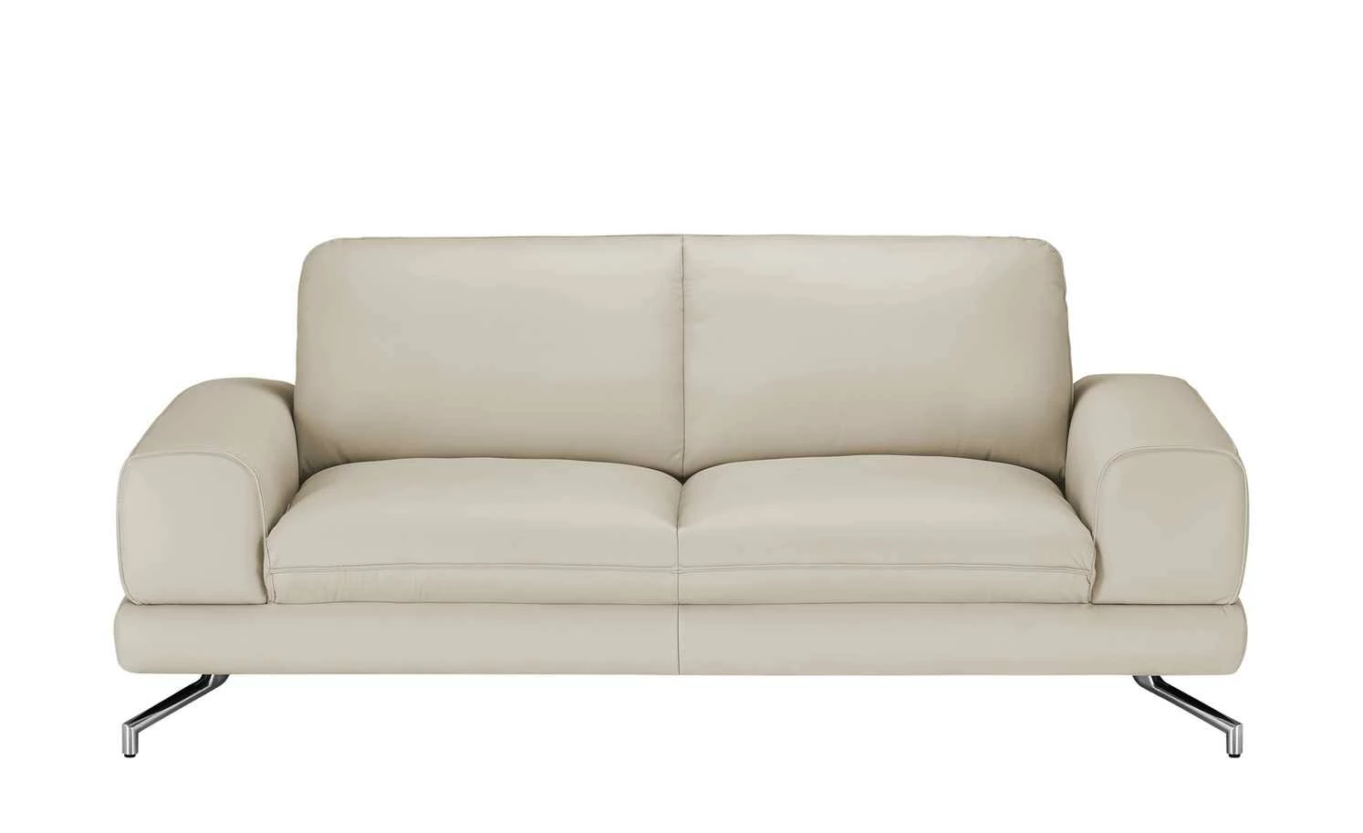 Wenn Sie stilbewusst sind und Wert auf Komfort legen, dann ist das Sofa Bonika von smart genau richtig für Sie. Die Couch überzeugt mit ihrem urbanen, modernen Design – und gleichzeitig bietet sie ein komfortables Sitzgefühl. Möglich machen das die Polsterung aus hochelastischem und komfortablem Kaltschaum und die Nosag-Wellenunterfederung im Sitzbereich. Für genügend Stabilität sorgen die tragenden Elemente aus Massivholz, die sich im Inneren des Sofas befinden. Der 2,5-Sitzer ist komplett mit einem hochwertigen Echtleder bezogen. Das macht es Ihnen möglich, die Couch wahlweise direkt vor eine Wand, aber auch gerne frei ins Wohnzimmer zu stellen. Ein optisches Highlight sind die glänzenden Aluminiumfüße.