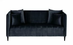 Edel und komfortabel zugleich: Das Sofa Sara fällt durch seinen leicht schimmernden Bezug aus samtig weicher Mikrofaser sofort ins Auge. Der Stoff ist längs gesteppt – und das an allen Seiten. Sie können Sara daher auch problemlos frei im Raum platzieren. Die hochwertige Schaumstoffpolsterung und die Wellenunterfederung sorgen für langanhaltenden Sitzkomfort. Vier weiche Zierkissen sind im Lieferumfang enthalten, sodass Sie es sich noch gemütlicher machen können. Schwarze Kegelfüße aus massivem Buchenholz runden den edlen Look von Sara gekonnt ab.