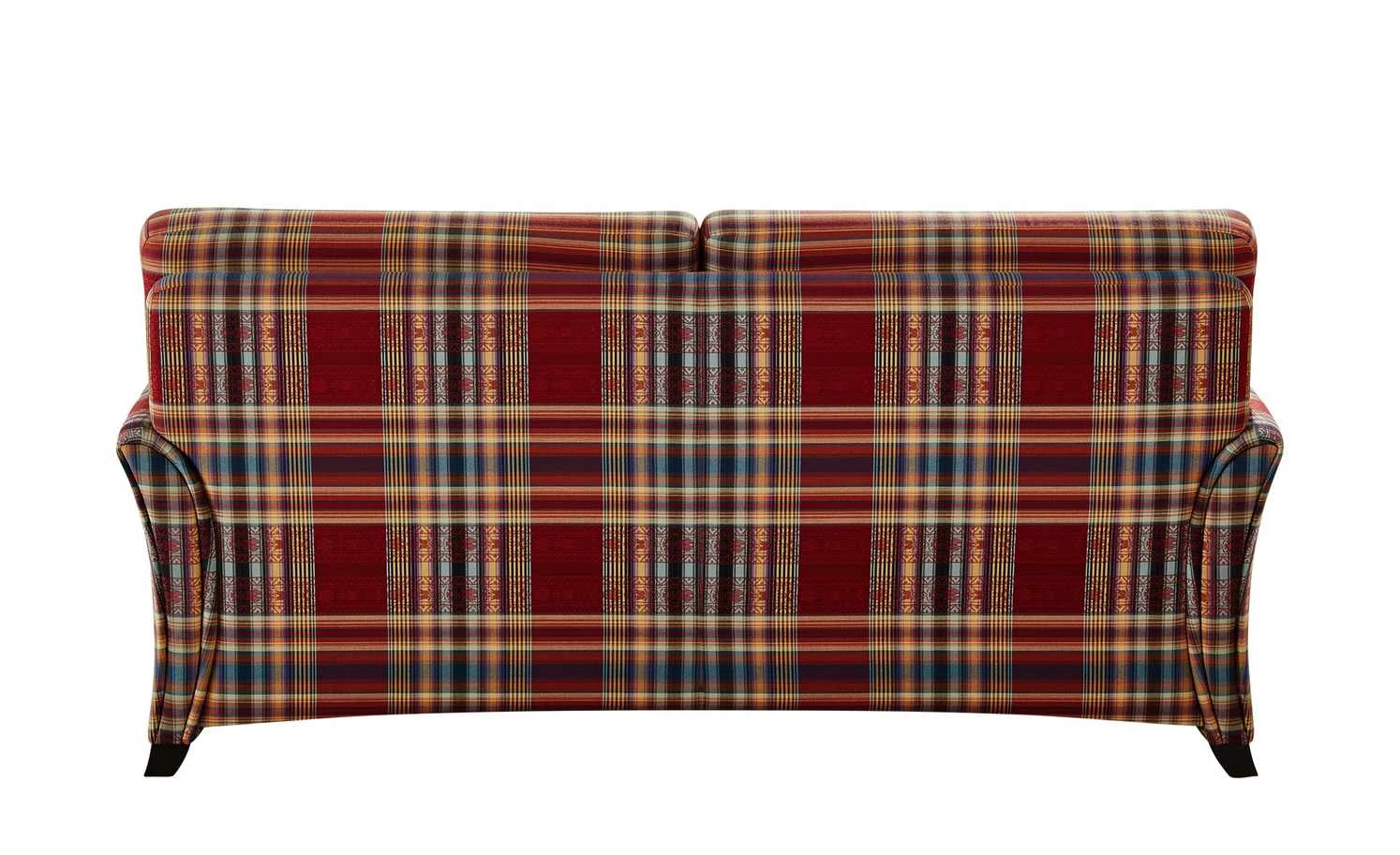Das große Karomuster mit der roten Grundfarbe ist das erste, was beim Sofa Mikado ins Auge fällt. Die Couch ist mit einem Federkern ausgestattet und mit Kaltschaum gepolstert. Die Polster-Unterkonstruktion besteht aus einer Nosag-Wellenunterfederung. Mikado steht auf vier stabilen Buchenholzfüßen. Der kastanienbraune Farbton passt gut zum Country-Stil des Sofas. Der strapazierfähige Webstoffbezug umhüllt die Couch komplett. So können Sie sie gerne frei in das Zimmer stellen. Zwei Armlehnkissen sind im Lieferumfang enthalten. Mikado ist als 2- , als 2,5- oder 3-Sitzer erhältlich. Sie können die drei auch gut zu einer Sitzgruppe kombinieren. Passend dazu ist auch der separat erhältliche Sessel. Zusätzlich wird das Modell komplett in Deutschland produziert.