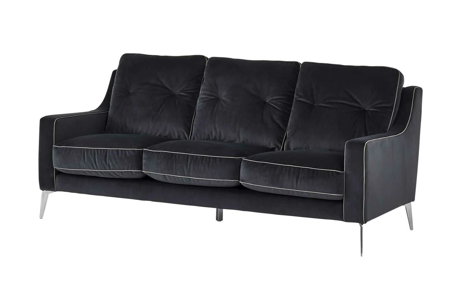 Mit der Sofagarnitur Michigan nutzen Sie Ihre vier Wände hervorragend aus. Der Rücken des Sofas ist echt bezogen, sodass es auch mitten im Raum aufgestellt werden kann. Die Sitz- und Rückenfläche des Sofas bietet dank ihres Überzugs aus Velour vortrefflichen Sitzkomfort. Auf diesem Sofa mit einer Polsterung aus Schaumstoff sitzen Sie immer bequem. Das Modell Michigan steht sicher auf ästhetischen chromfarbenen Füßen aus Metall. Es hat eine Sitzhöhe von 49 cm und nimmt insgesamt 90 × 208 cm ein. Dieses Sofa garantiert jedem Zuhause einen ausgesprochen hohen Wohlfühlfaktor.