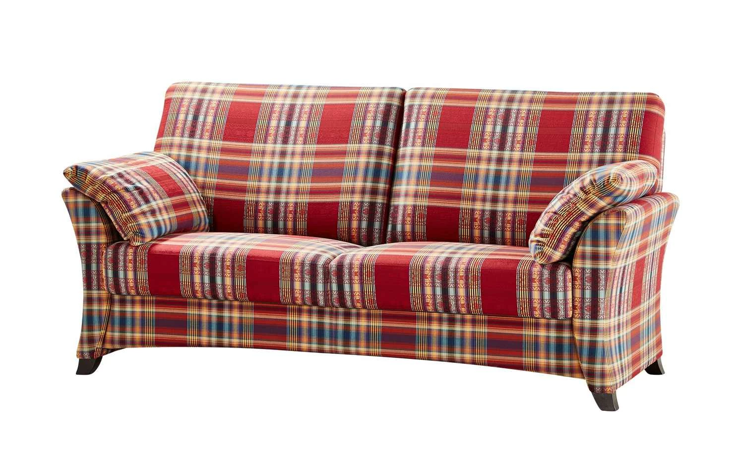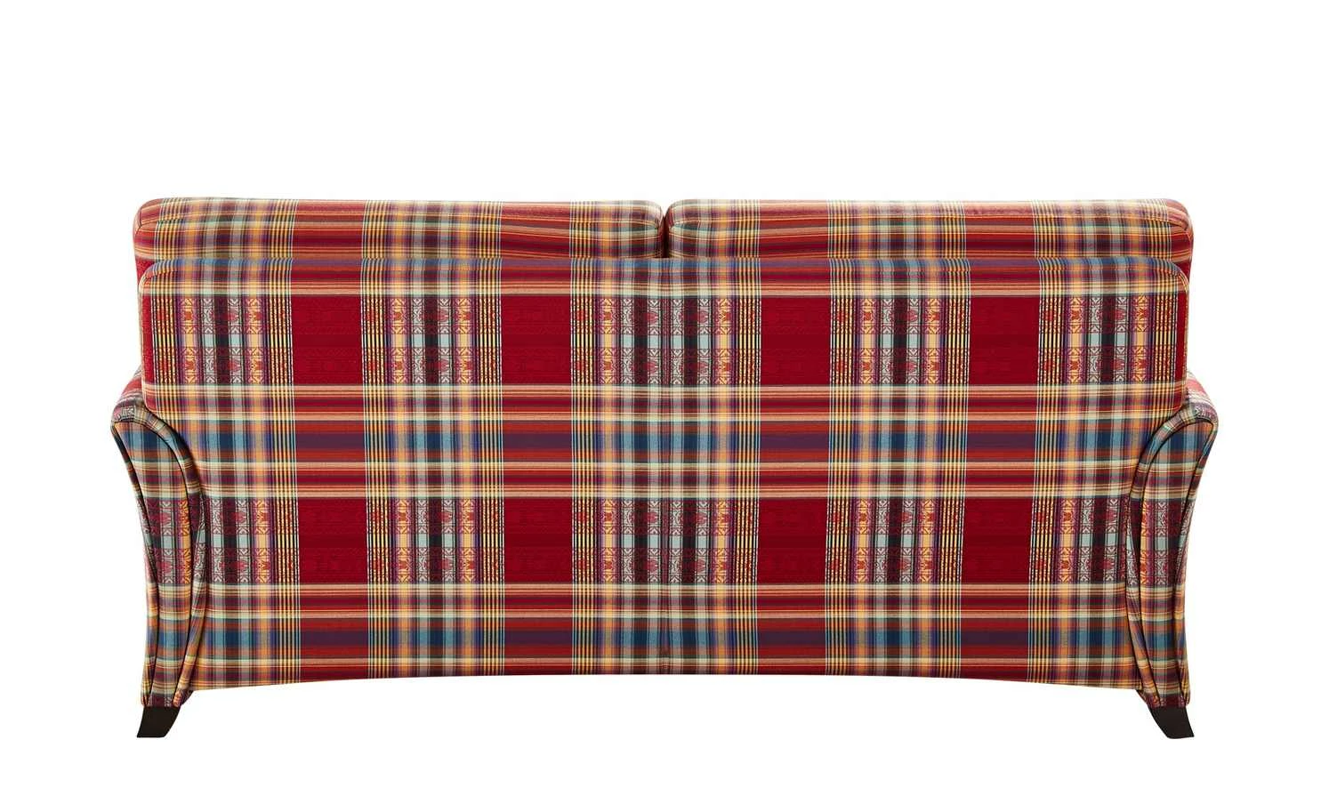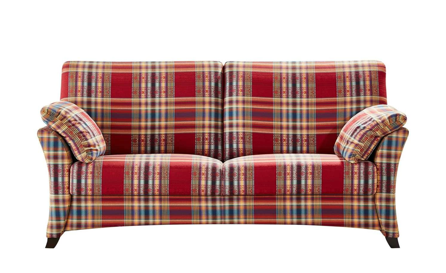 Das große Karomuster mit der roten Grundfarbe ist das erste, was beim Sofa Mikado ins Auge fällt. Die Couch ist mit einem Federkern ausgestattet und mit Kaltschaum gepolstert. Die Polster-Unterkonstruktion besteht aus einer Nosag-Wellenunterfederung. Mikado steht auf vier stabilen Buchenholzfüßen. Der kastanienbraune Farbton passt gut zum Country-Stil des Sofas. Der strapazierfähige Webstoffbezug umhüllt die Couch komplett. So können Sie sie gerne frei in das Zimmer stellen. Zwei Armlehnkissen sind im Lieferumfang enthalten. Mikado ist als 2- , als 2,5- oder 3-Sitzer erhältlich. Sie können die drei auch gut zu einer Sitzgruppe kombinieren. Passend dazu ist auch der separat erhältliche Sessel. Zusätzlich wird das Modell komplett in Deutschland produziert.