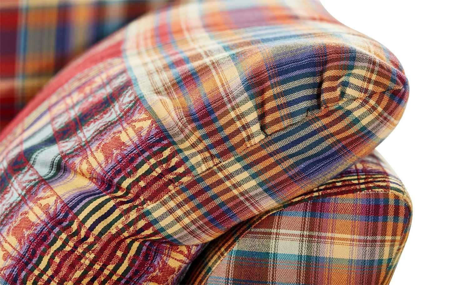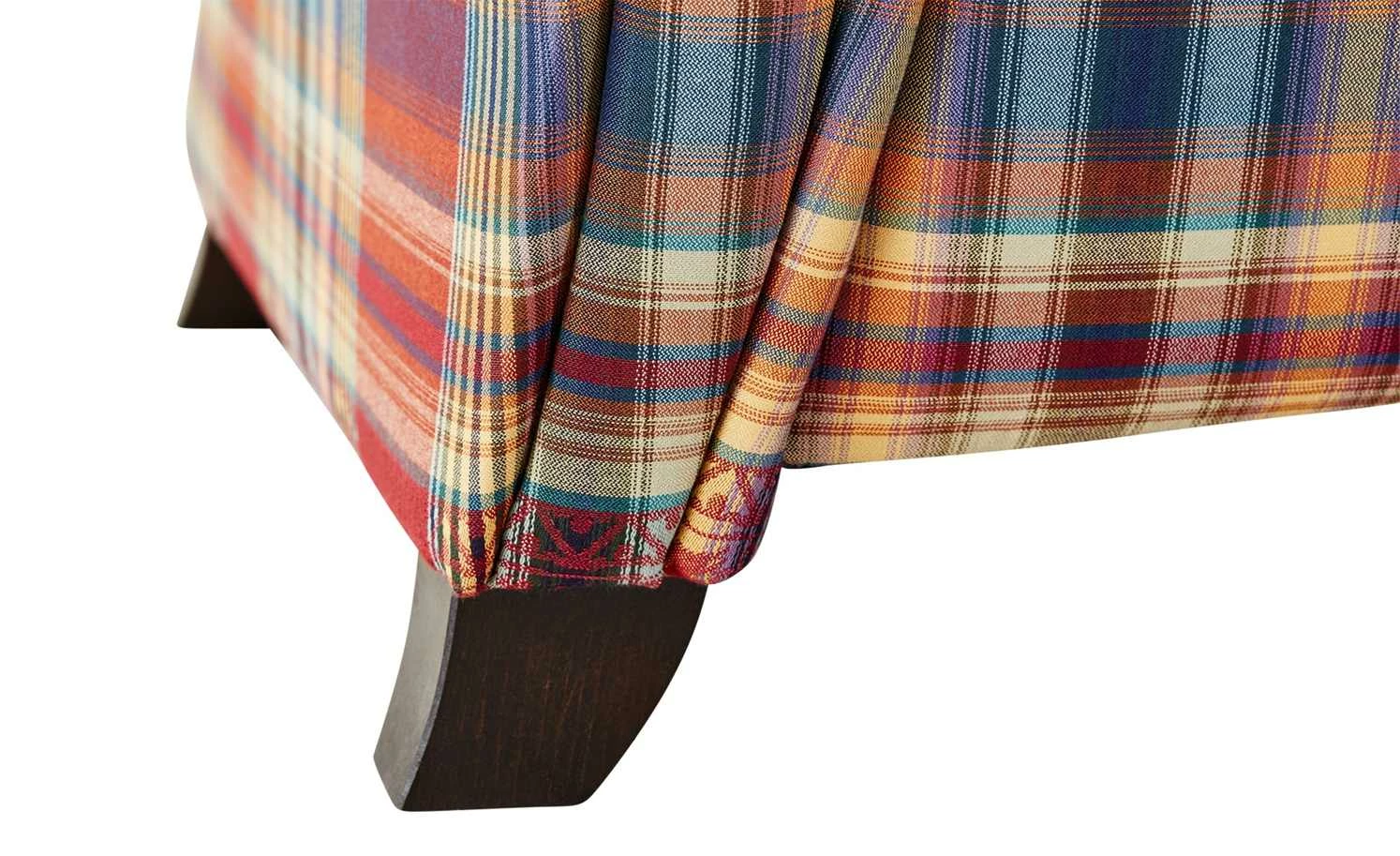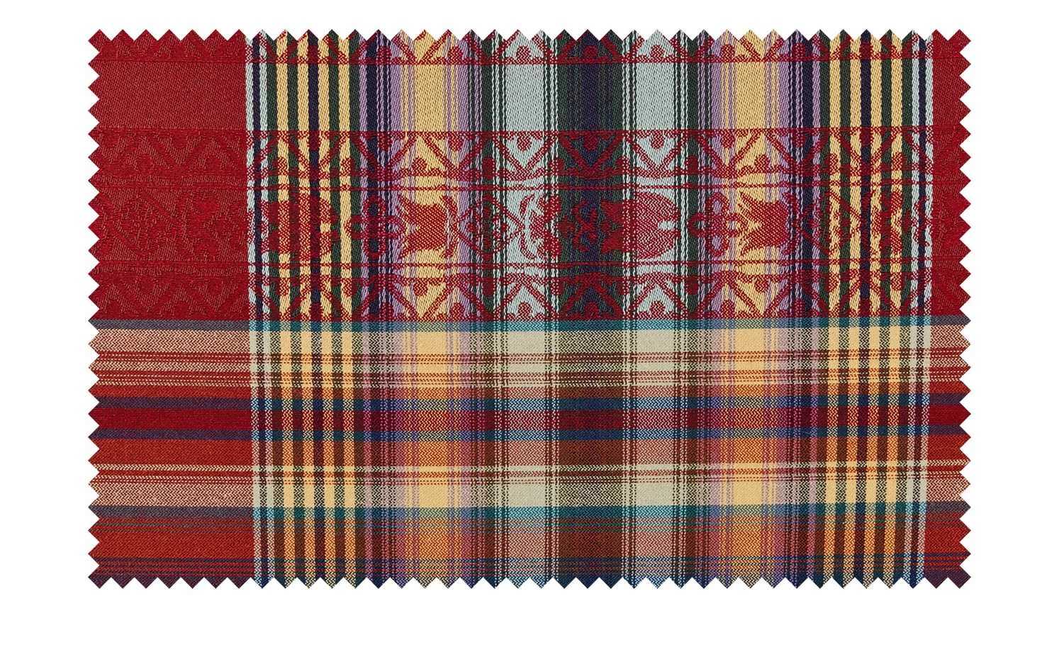 Das große Karomuster mit der roten Grundfarbe ist das erste, was beim Sofa Mikado ins Auge fällt. Die Couch ist mit einem Federkern ausgestattet und mit Kaltschaum gepolstert. Die Polster-Unterkonstruktion besteht aus einer Nosag-Wellenunterfederung. Mikado steht auf vier stabilen Buchenholzfüßen. Der kastanienbraune Farbton passt gut zum Country-Stil des Sofas. Der strapazierfähige Webstoffbezug umhüllt die Couch komplett. So können Sie sie gerne frei in das Zimmer stellen. Zwei Armlehnkissen sind im Lieferumfang enthalten. Mikado ist als 2- , als 2,5- oder 3-Sitzer erhältlich. Sie können die drei auch gut zu einer Sitzgruppe kombinieren. Passend dazu ist auch der separat erhältliche Sessel. Zusätzlich wird das Modell komplett in Deutschland produziert.