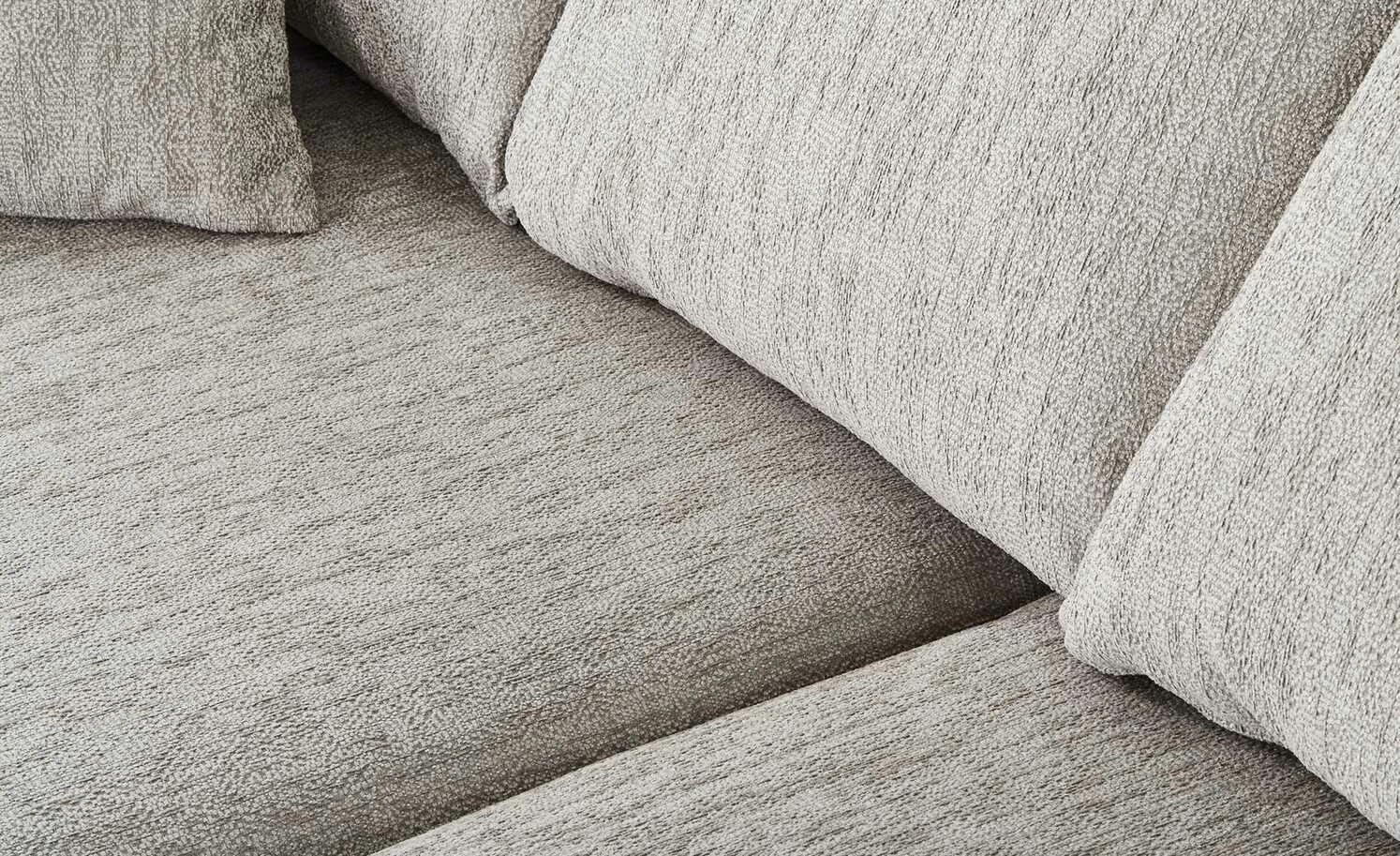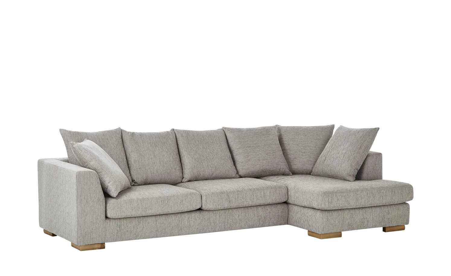 Mit seinem zeitlosen Design fügt sich das Ecksofa Paulina von SOHO wunderbar in alle Einrichtungen ein. Paulina ist aus hochwertigen Materialien gefertigt worden. Für die Polsterung wurde ein langlebiger, hochelastischer und gemütlicher Kaltschaum verwendet, der mit einer speziellen Faserwatte ummantelt wurde. Sieben Kissen sind im Lieferumfang enthalten und können nach Belieben auf dem Sofa platziert werden. Sofa und Kissen sind mit einem silbergrau melierten Webstoff bezogen. Da sich der Original-Bezug auch auf der Rückseite befindet, kann Paulina auch mittig in den Wohnraum gestellt werden.