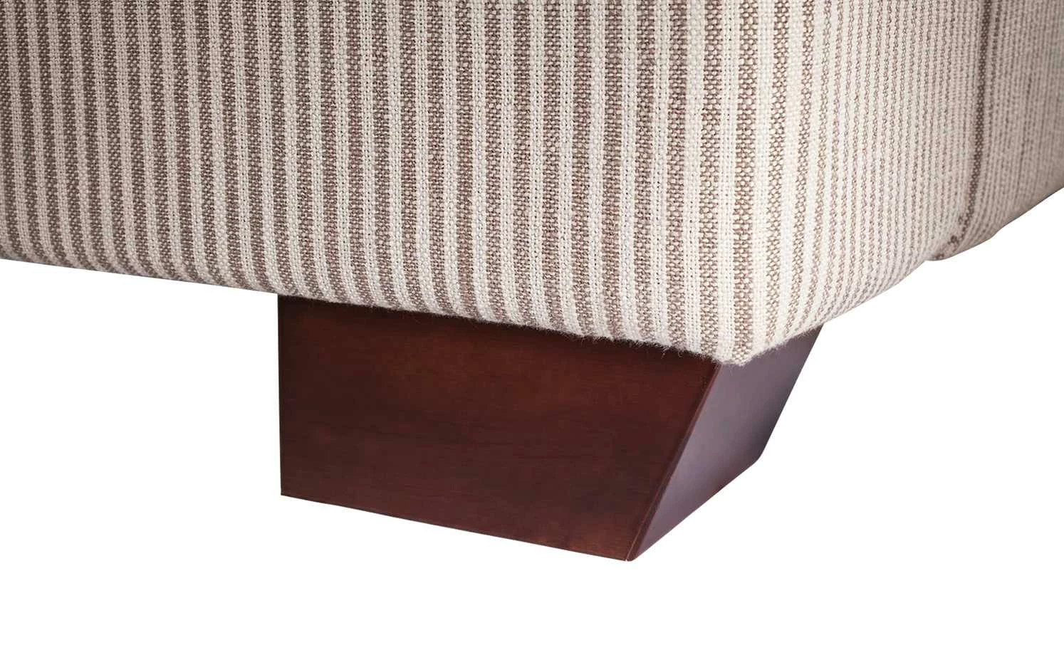 Dieses Loungesofa bezaubert mit seinem hübschen, gestreiften Rundum-Stoffbezug. Das besondere an Franka ist, dass alle tragenden Teile aus Massivholz gefertigt sind. Der sandfarbene Farbton schafft eine gemütliche Atmosphäre und lässt sich gut mit vielen anderen Einrichtungsgegenständen kombinieren. Die walnußfarbigen Holzfüße unterstreichen den natürlichen Charakter des Loungesofas. Die hochwertigen Kaltschaumpolster sorgen für hohen Komfort beim Sitzen. Drei große Rücken- und 2 kleine Dekokissen machen das Sofa besonders wohnlich und gemütlich.