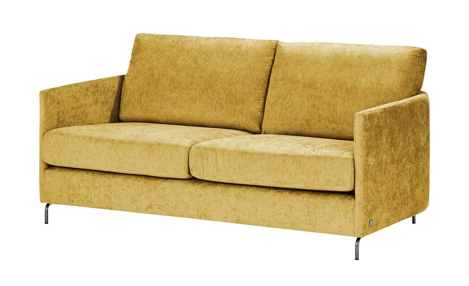 Eine elegante Oase der Gemütlichkeit: Das Sofa Harriet Day. Die Kombination aus dicker Schaumstoffpolsterung und Wellenunterfederung sorgt für einen langanhaltenden, hohen Sitzkomfort. Das Sofa ist mit einem schimmernden Veloursstoff bezogen und besonders weich. Die glänzenden Metallfüße greifen den edlen Look gekonnt auf. Platzieren Sie das Sofa gern auch mittig im Raum: Der weiche Veloursbezug befindet sich nämlich auch am Rücken.
