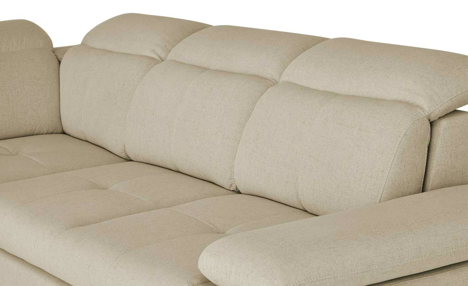 Auf dem Ecksofa Avilla lässt sich der Tag entspannt ausklingen. Dicke Polster und verstellbare Rückenlehnen sorgen für den nötigen Komfort. Auch die Armlehne lässt sich kinderleicht hochklappen. Avilla ist mit einem modernen, pflegeleichten Flachgewebe bezogen und besitzt chromfarbene Füße, die einen edlen Kontrast setzten. Übrigens: Wenn Sie die erweiterte Funktion wählen, ist Avilla zusätzlich mit einem geräumigen Bettkasten und einer praktischen Schlaffunktion ausgestattet.