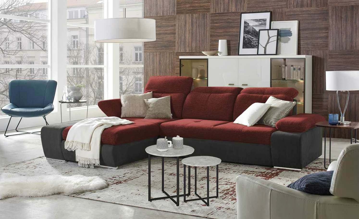 Mit dem Ecksofa Avilla schaffen Sie sich ganz leicht Ihre eigene Wohlfühl-Oase. Dicke Polster und einladende Arm- und Rückenlehnen sorgen für den nötigen Komfort. Verstellen Sie die Kopfteile und klappen Sie die Armlehnen kinderleicht hoch: Avilla passt sich Ihren Bedürfnissen problemlos an. Die Couch ist mit einer weichen Mikrofaser und einem strapazierfähigen Webstoff bezogen, sodass sich ein attraktiver haptischer und wahlweise auch optischer Kontrast ergibt. Auch die chromfarbenen Füße heben sich von den Stoffen ab und veredeln das Gesamterscheinungsbild gekonnt. Übrigens: Wählen Sie die erweiterte Funktion, wenn Sie häufiger Übernachtungsgäste empfangen. Avilla ist dann zusätzlich mit einem geräumigen Bettkasten und einer praktischen Schlaffunktion ausgestattet.