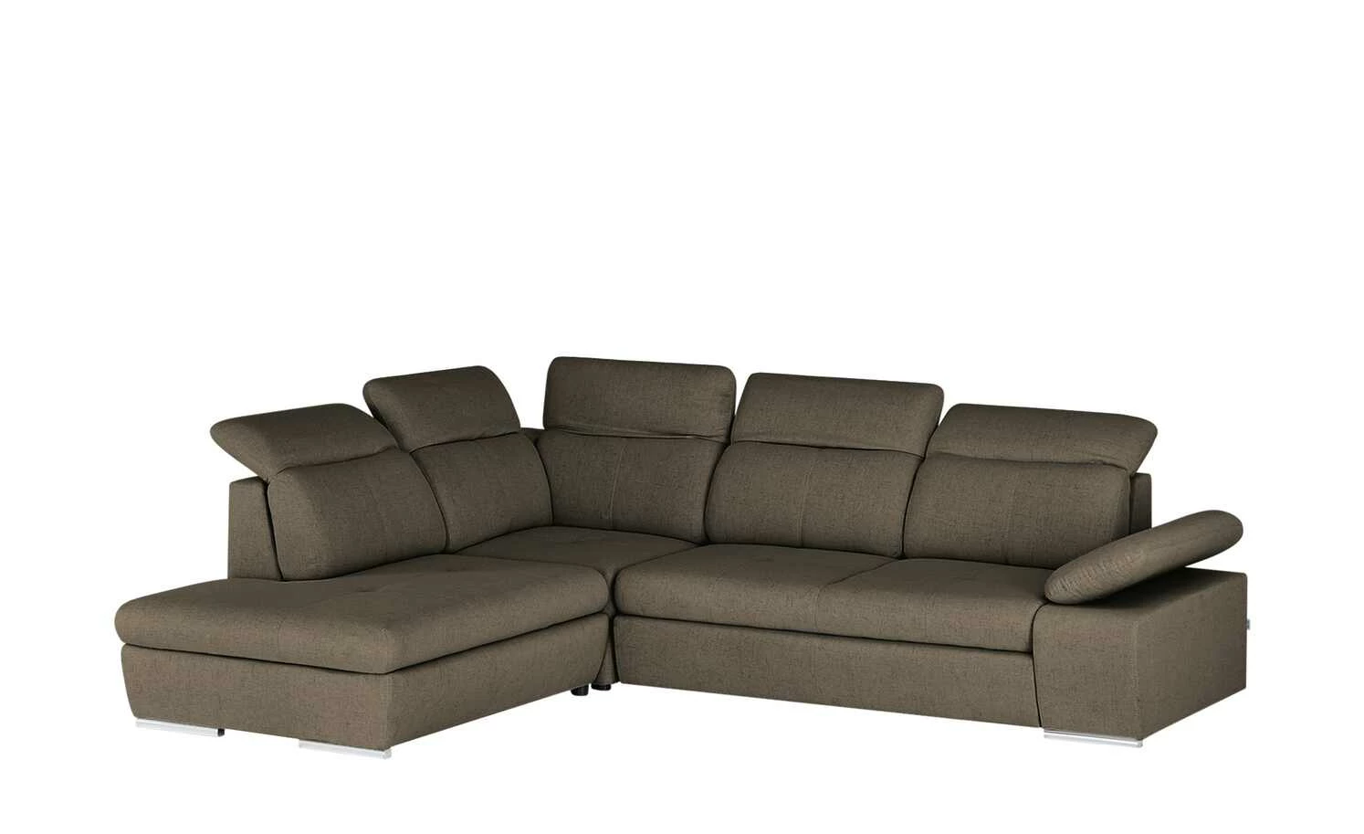 Auf dem Ecksofa Avilla lässt sich der Tag entspannt ausklingen. Dicke Polster und verstellbare Rückenlehnen sorgen für den nötigen Komfort. Auch die Armlehne lässt sich kinderleicht hochklappen. Avilla ist mit einem modernen, pflegeleichten Flachgewebe bezogen und besitzt chromfarbene Füße, die einen edlen Kontrast setzten. Übrigens: Wenn Sie die erweiterte Funktion wählen, ist Avilla zusätzlich mit einem geräumigen Bettkasten und einer praktischen Schlaffunktion ausgestattet.