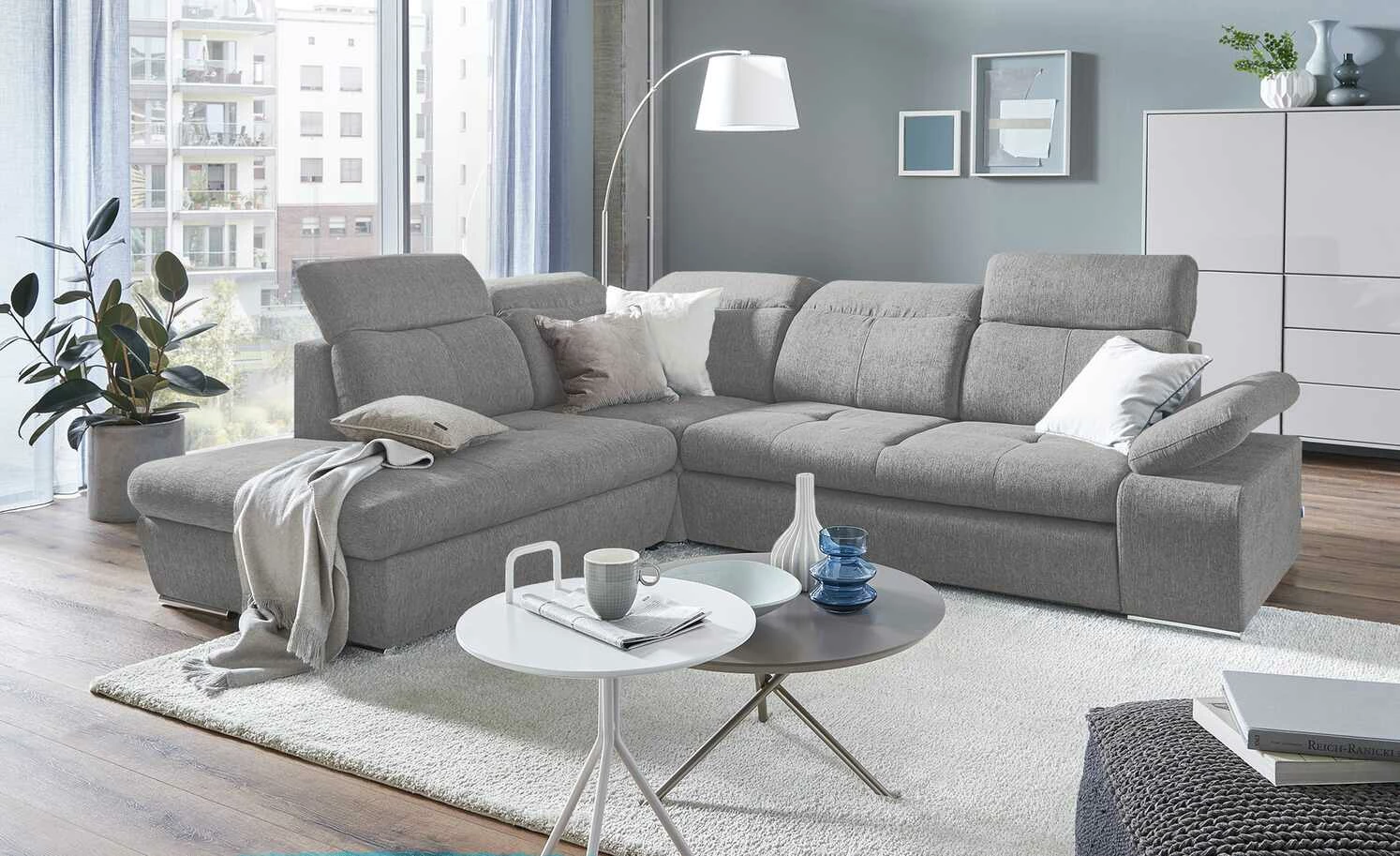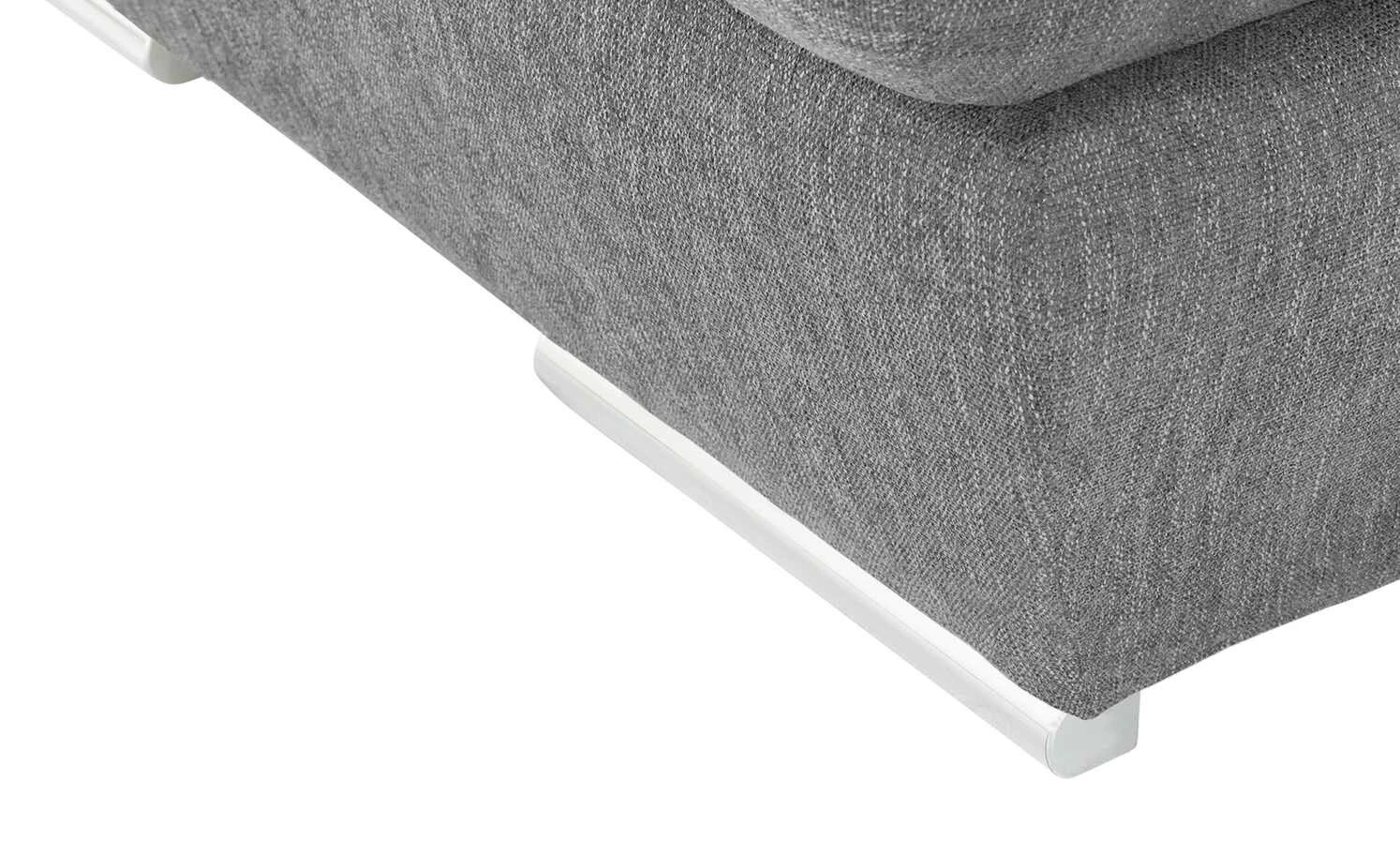 Auf dem Ecksofa Avilla lässt sich der Tag entspannt ausklingen. Dicke Polster und verstellbare Rückenlehnen sorgen für den nötigen Komfort. Auch die Armlehne lässt sich kinderleicht hochklappen. Avilla ist mit einem strapazierfähigen, melierten Webstoff bezogen und besitzt chromfarbene Füße, die einen edlen Kontrast setzten. Übrigens: Wenn Sie die erweiterte Funktion wählen, ist Avilla zusätzlich mit einem geräumigen Bettkasten und einer praktischen Schlaffunktion ausgestattet.