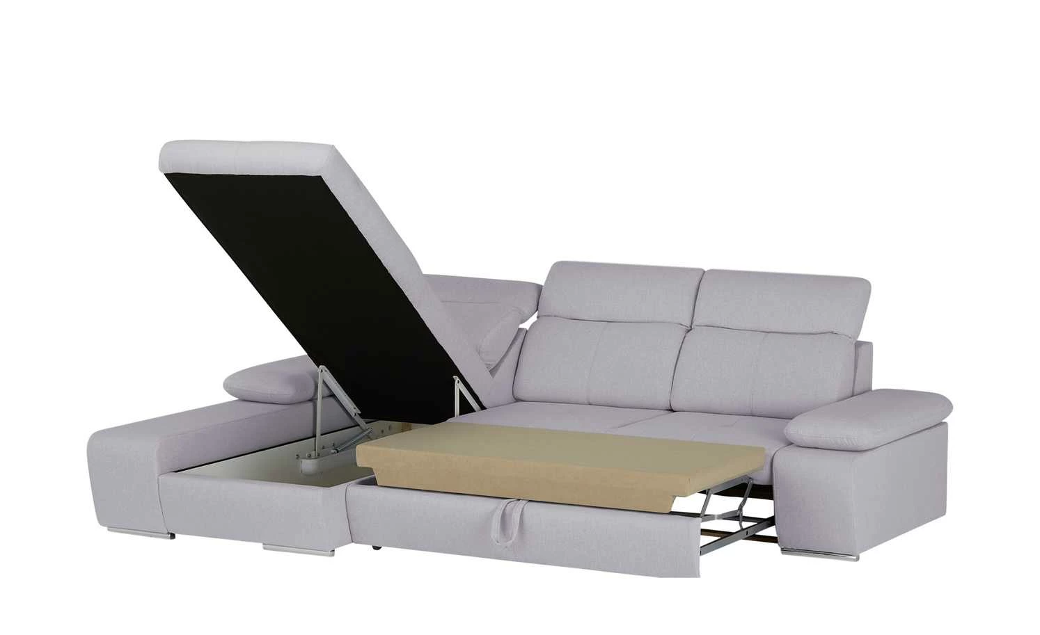 Mit dem Ecksofa Avilla schaffen Sie sich ganz leicht Ihre eigene Wohlfühl-Oase. Dicke Polster und einladende Arm- und Rückenlehnen sorgen für den nötigen Komfort. Verstellen Sie die Kopfteile und klappen Sie die Armlehnen kinderleicht hoch: Avilla passt sich Ihren Bedürfnissen problemlos an. Die gesamte Couch ist mit einem zeitlosen, strapazierfähigen Webstoff. Die chromfarbenen Füße setzen einen edlen Kontrast und runden das Erscheinungsbild von Avilla ab. Übrigens: Wählen Sie die erweiterte Funktion, wenn Sie häufiger Übernachtungsgäste empfangen. Avilla ist dann zusätzlich mit einem geräumigen Bettkasten und einer praktischen Schlaffunktion ausgestattet.