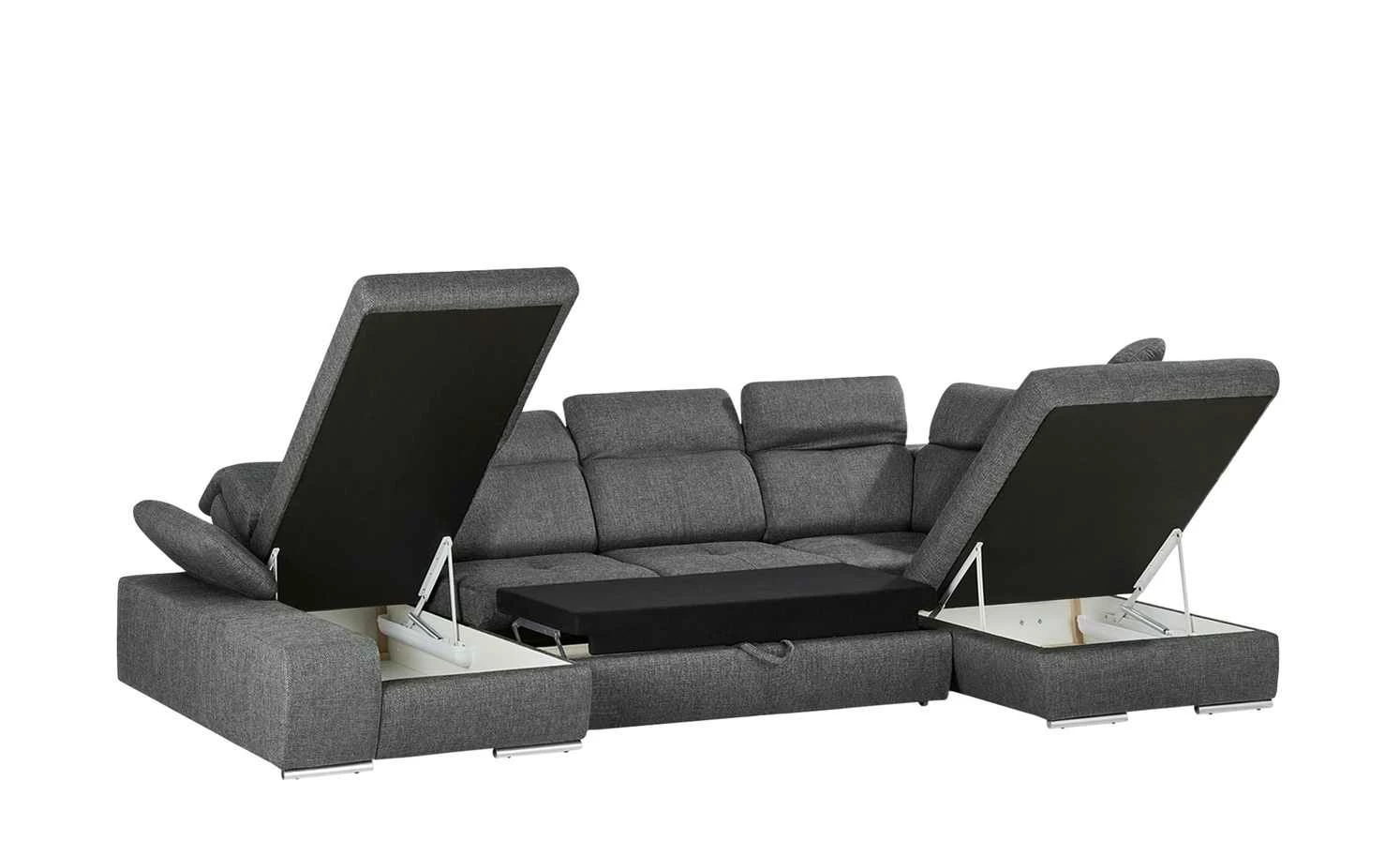 Die Wohnlandschaft Avilla besitzt alle Eigenschaften, die ein komfortables Familiensofa mitbringen muss. Die großzügige Sitzfläche von Avilla ist hochwertig gepolstert und mit einem pflegeleichten und strapazierfähigen Webstoff bezogen. Alle Kopfteile und auch die Armlehne sind kinderleicht verstellbar und passen sich an die jeweiligen Bedürfnisse an. Entspannen Sie bei einem guten Buch auf einer der beiden Ottomanen, oder genießen Sie mit Freunden und Familie einen gemeinsamen Filme-Abend. Unser Tipp: Wählen Sie Avilla ganz einfach mit erweiterter Funktion, wenn Sie die Wohnlandschaft zur praktischen Schlafgelegenheit umbauen wollen. In dieser Variante stehen Ihnen außerdem gleich zwei geräumige Bettkästen zur Verfügung.