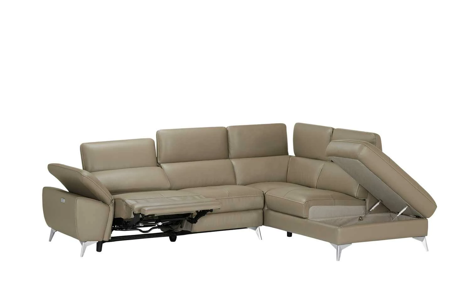 Ihre vier Wände nutzen Sie mit dem Ledersofa Danae perfekt aus. Das Sofa überzeugt in gewohnter Qualität der Marke uno und steht somit für gelungenes Design und einzigartiges Sitzvergnügen. Die praktische automatische Relaxfunktion lässt die Mühen des Tages von Ihnen abfallen. Auf der mit Leder bezogenen Sitz- und Rückenfläche sitzen Sie wirklich bequem. Das Sofa hat eine Nosagfederung. Der Korpusbezug aus stilvollem Kunstleder rundet den Gesamteindruck gekonnt ab. Der Rücken des Sofas ist echt bezogen, damit es auch mitten im Raum platziert werden kann. Die chromfarbenen Füße aus Metall komplettieren das stilvolle Erscheinungsbild des Sofas. Das Modell Danae verfügt über eine Ottomane auf der rechten Seite und wird dank der Sitztiefe von 54 cm zu einer wahren Oase der Gemütlichkeit. Es nimmt insgesamt 79 × 282 cm ein und hat eine Sitzhöhe von 47 cm. Im Handumdrehen wird dieses Sofa zum neuen Höhepunkt Ihres Zuhauses.