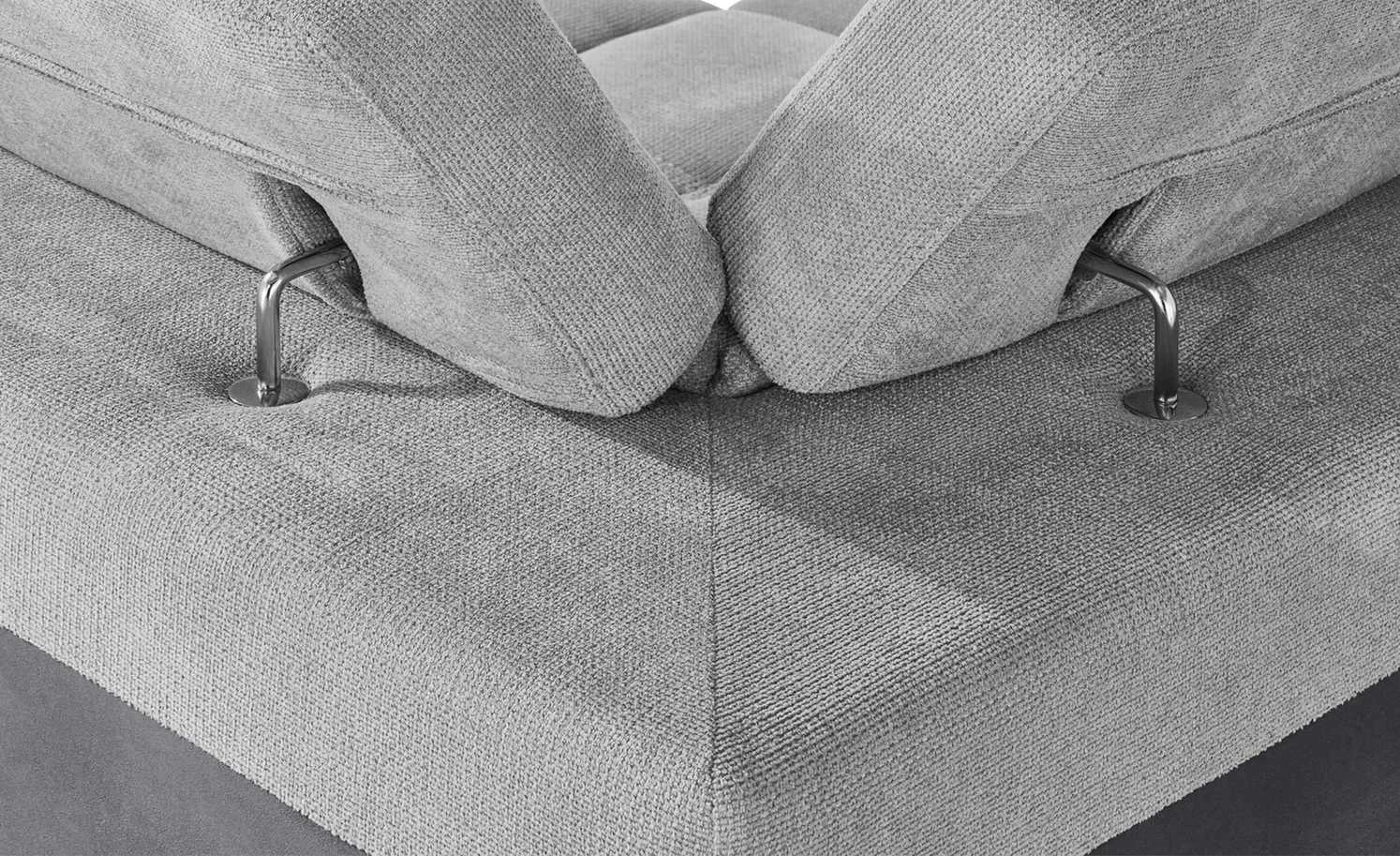 Auf einem bequemen Sofa entspannt es sich doch viel besser. Da bietet sich das Ecksofa Formula an. Durch die Schaumstoff-Polsterung und die zusätzliche Nosag-Wellenunterfederung ist Formula richtig gemütlich. Die Couch verfügt über verstellbare Kopfpolster. Klappen Sie sie nach Bedarf in die gewünschte Position. Formula is L-förmig. Dadurch ist die Couch groß genug, um auch mal die Beine hochzulegen. Der Korpus ist mit einer Mikrofaser bezogen – auch auf der gesamten Rückseite. Für Sitzfläche und Vorderseite des Rückens wurde ein weicher Webstoff gewählt.