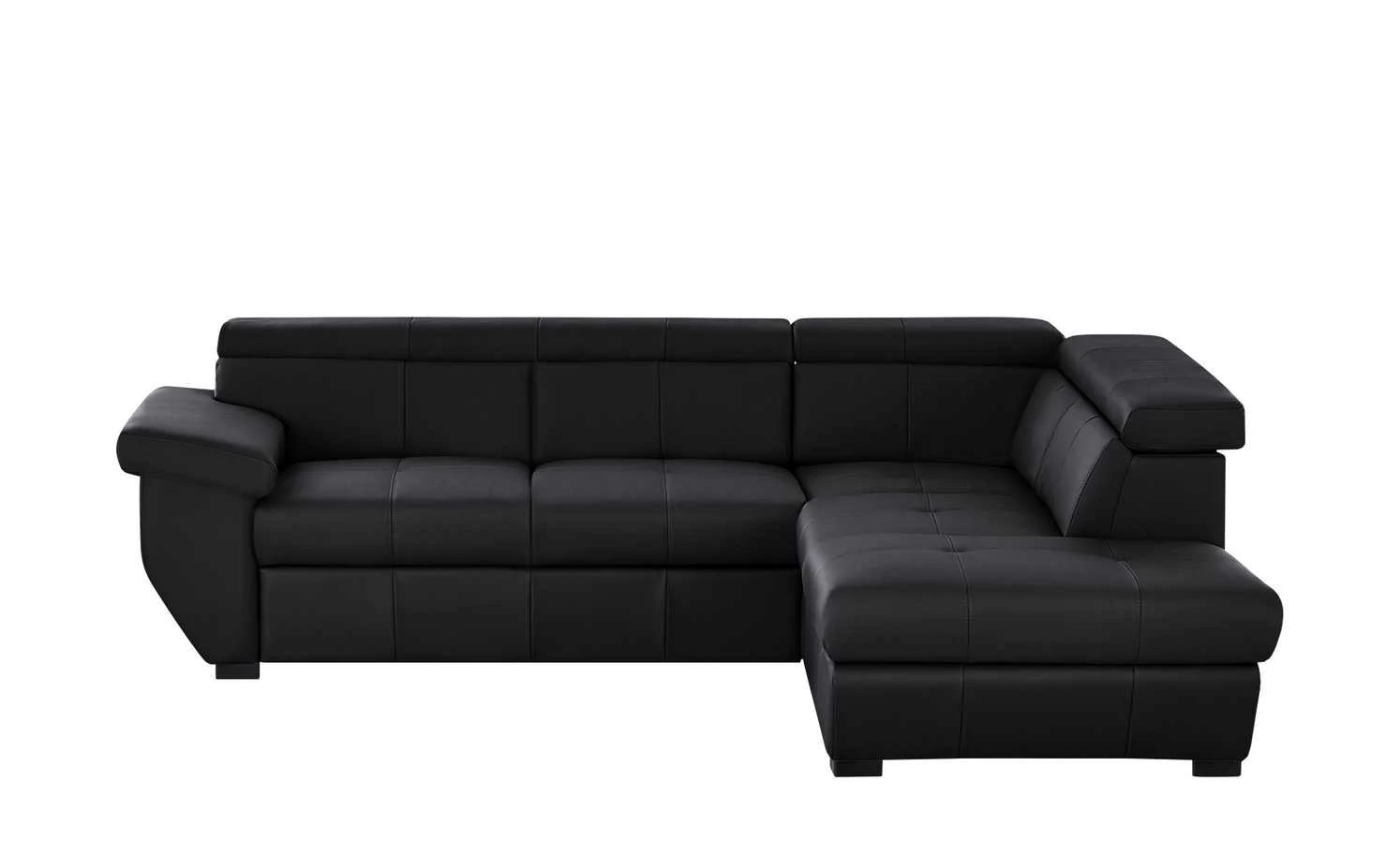Hochwertiges Echtleder umhüllt das Ecksofa Speedway. Der schwarze Farbton wirkt sehr edel und passt zum zeitlosen Gesamteindruck der Couch. Ein Eyecatcher sind die formschönen Absteppungen von Sitz- und Rückenbereich. Speedway ist mit einer Nosag-Wellenunterfederung ausgestattet und mit Schaumstoff gepolstert. Die Kopfpolster können Sie verstellen, um sich noch komfortabler hinzusetzen und anzulehnen.