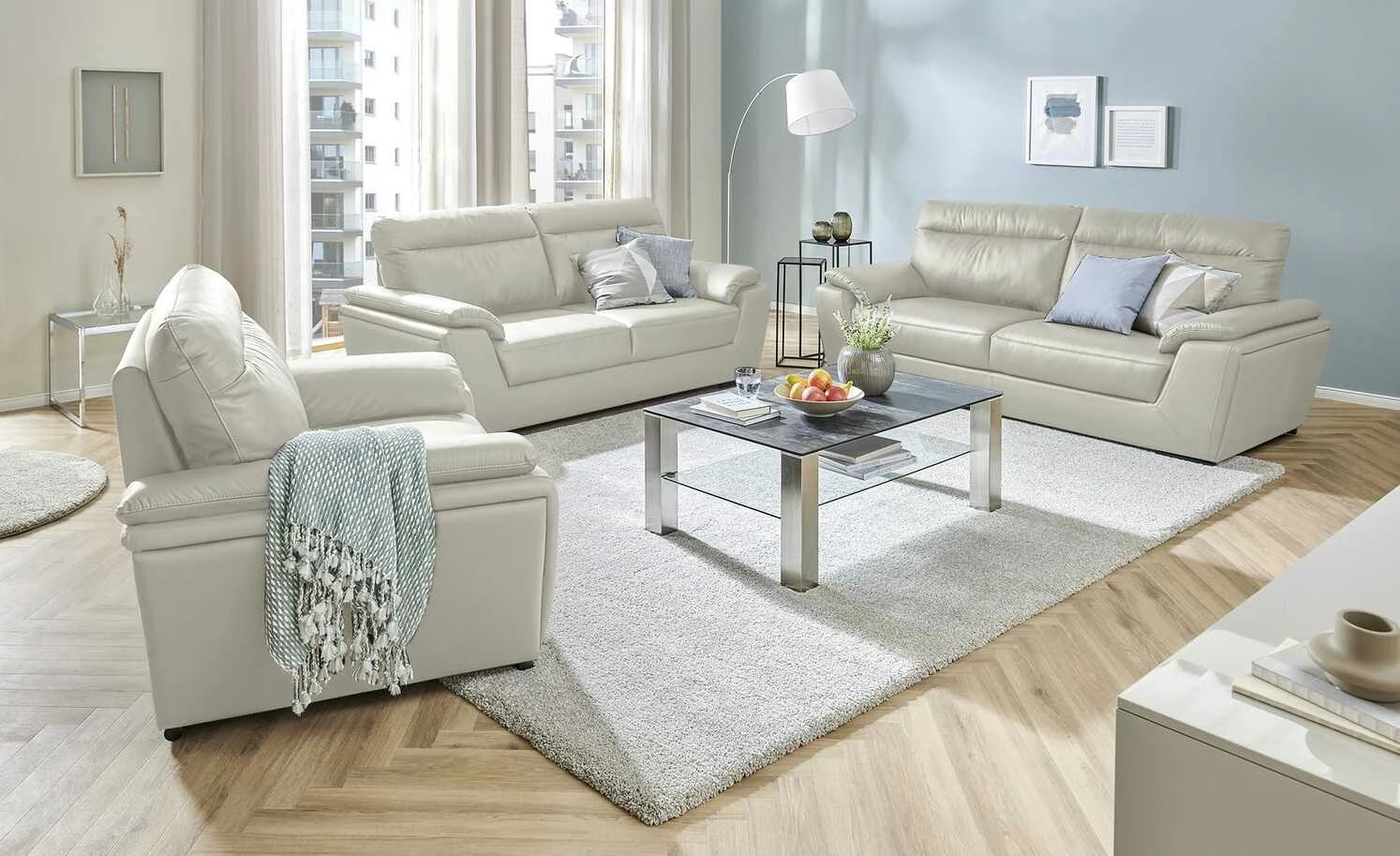 - Pflegehinweise: keine scharfen Haushaltsreiniger verwenden, Leder zweimal im Jahr mit Lederpflege behandeln, Flüssigkeiten und Fett möglichst sofort abwischen