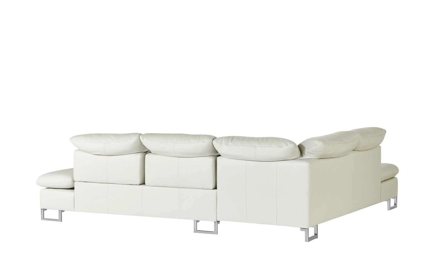 Saraa ist ein stylisches Ledersofa in elegantem Creme. Dank seiner Form bietet Saraa viel Platz – auch zum Hochlegen der Beine. Die Rückseite des Sofas ist echt, also auch mit Leder bezogen. Darum können Sie die Couch frei im Raum platzieren. Saraa verfügt über eine Polsterung mit PUR Schaum und einen Federkern. Im Sitzbereich kommt eine Wellenunterfederung hinzu. Für mehr Komfort können Sie die Sitztiefe manuell verstellen.