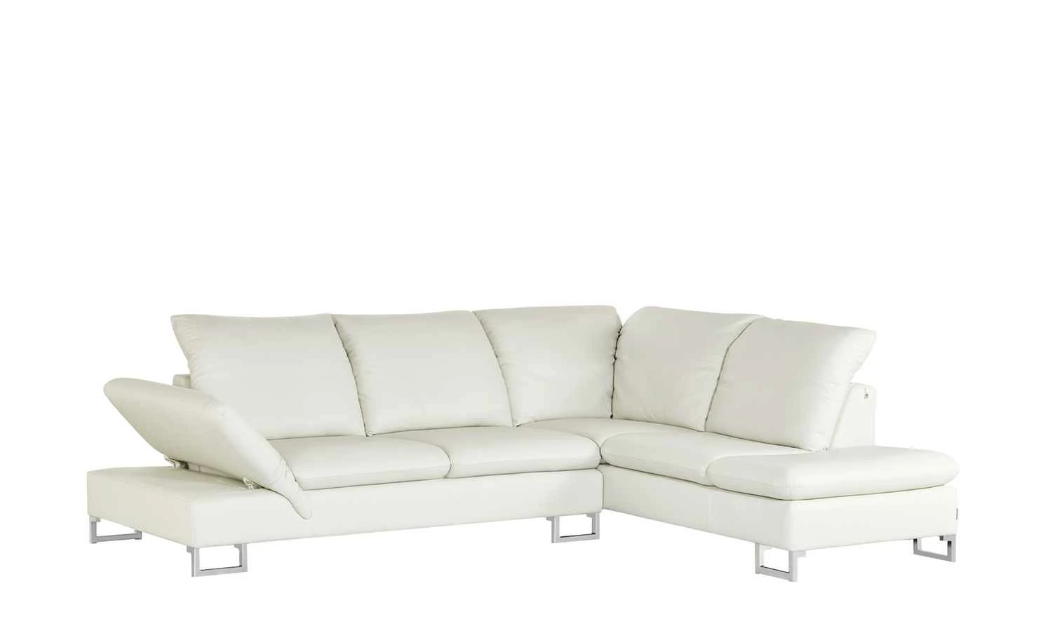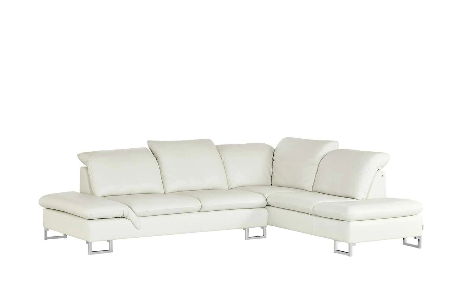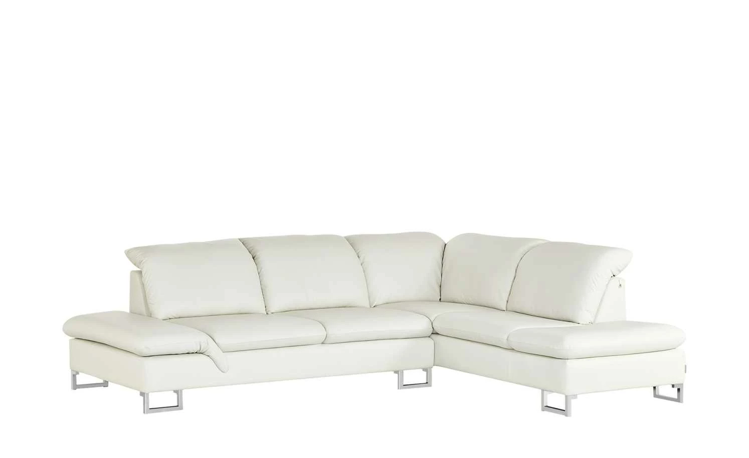 Saraa ist ein stylisches Ledersofa in elegantem Creme. Dank seiner Form bietet Saraa viel Platz – auch zum Hochlegen der Beine. Die Rückseite des Sofas ist echt, also auch mit Leder bezogen. Darum können Sie die Couch frei im Raum platzieren. Saraa verfügt über eine Polsterung mit PUR Schaum und einen Federkern. Im Sitzbereich kommt eine Wellenunterfederung hinzu. Für mehr Komfort können Sie die Sitztiefe manuell verstellen. Auch die Armlehnen und die Kopfteile können Sie variieren – und es sich noch bequemer machen.