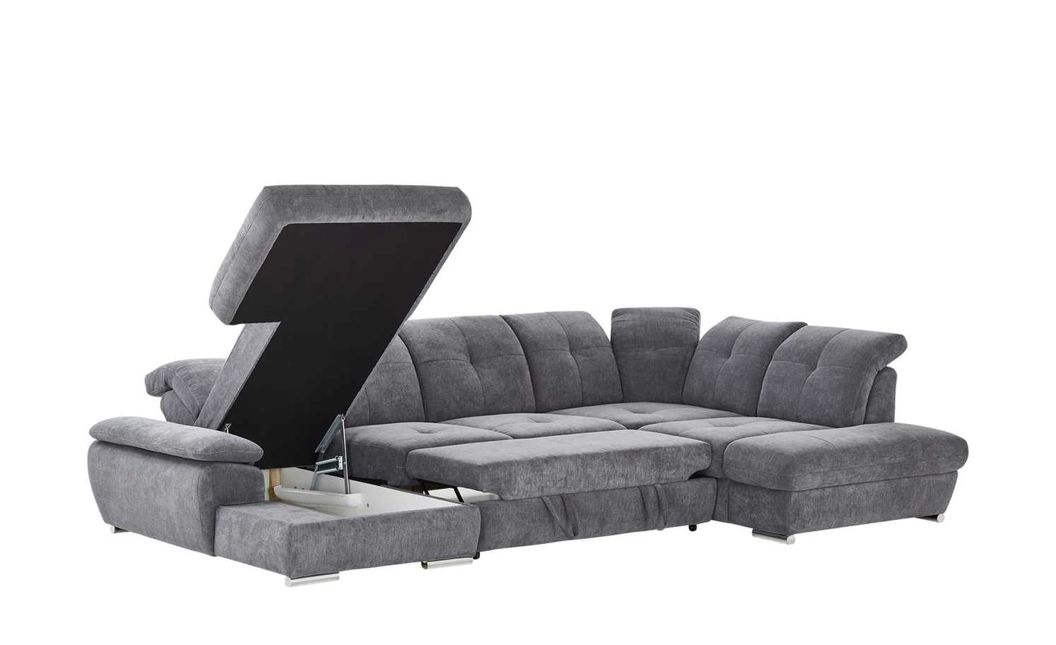 - Mehr zu Ausstattung / Funktion: 1x Armteilverstellung , geräumiger Bettkasten in der Recamiere, Sitz mit hochwertigen und formstabilen Schaumstoff gepolstert, Insgesamt 7x Kopfteil -und 6x Sitztiefenverstellung,