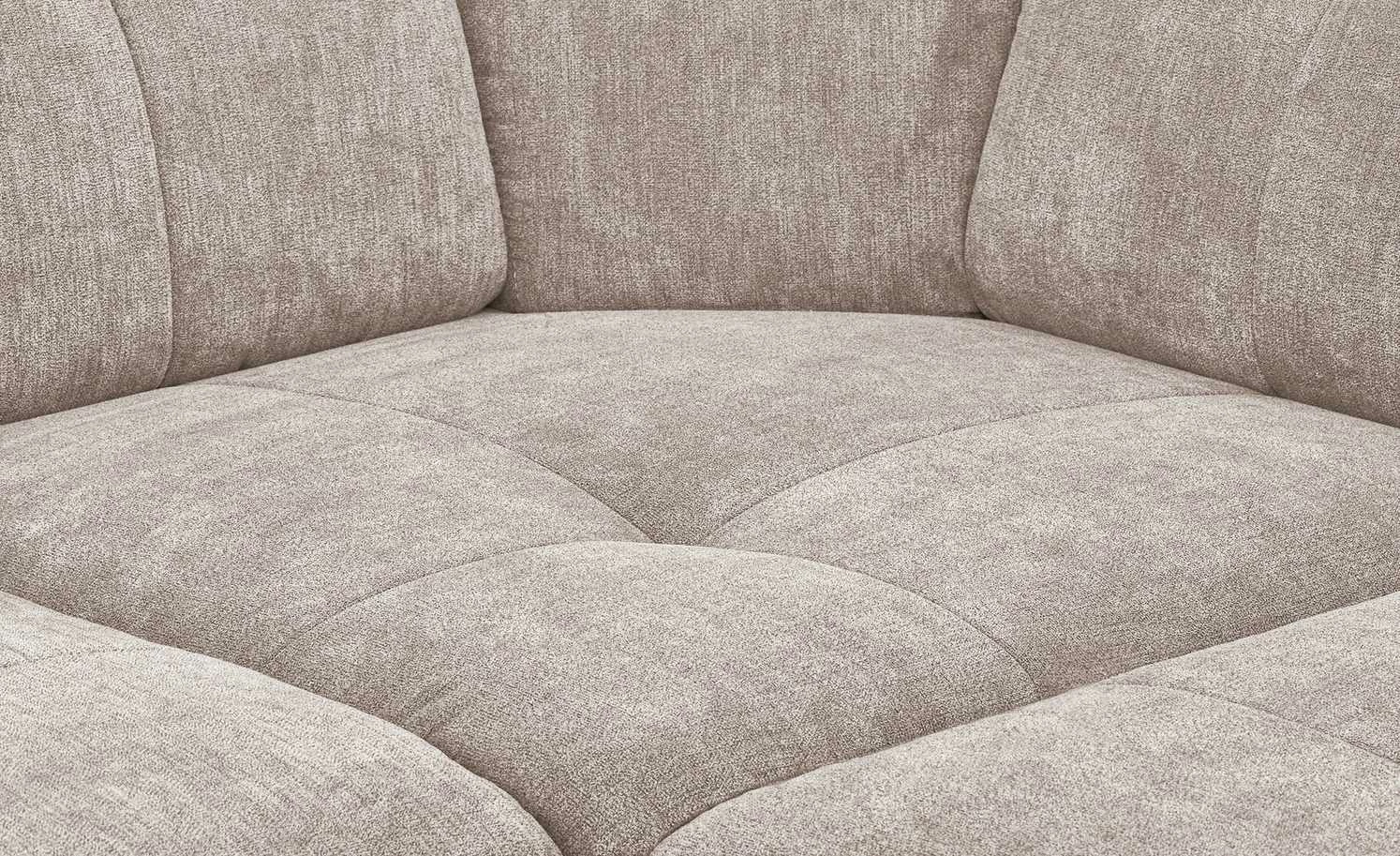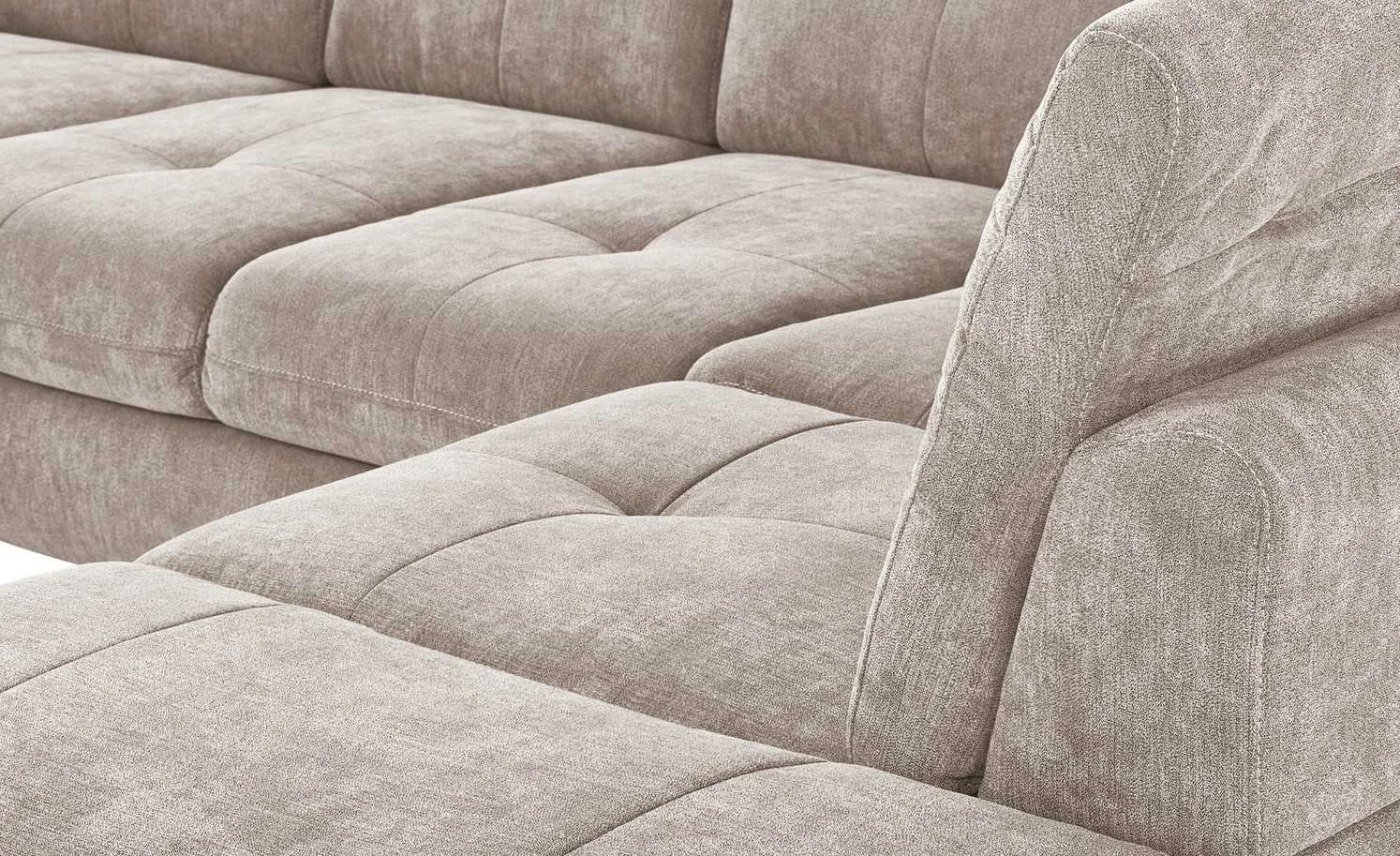 Das gesamte Sofa ist mit einem strapazierfähigen Mikrofaserstoff bezogen und kann problemlos frei im Raum stehen. Die Wohnlandschaft Gladys gibt es in vielen verschiedenen Farbvarianten und passt dadurch in nahezu jedes Raumkonzept.