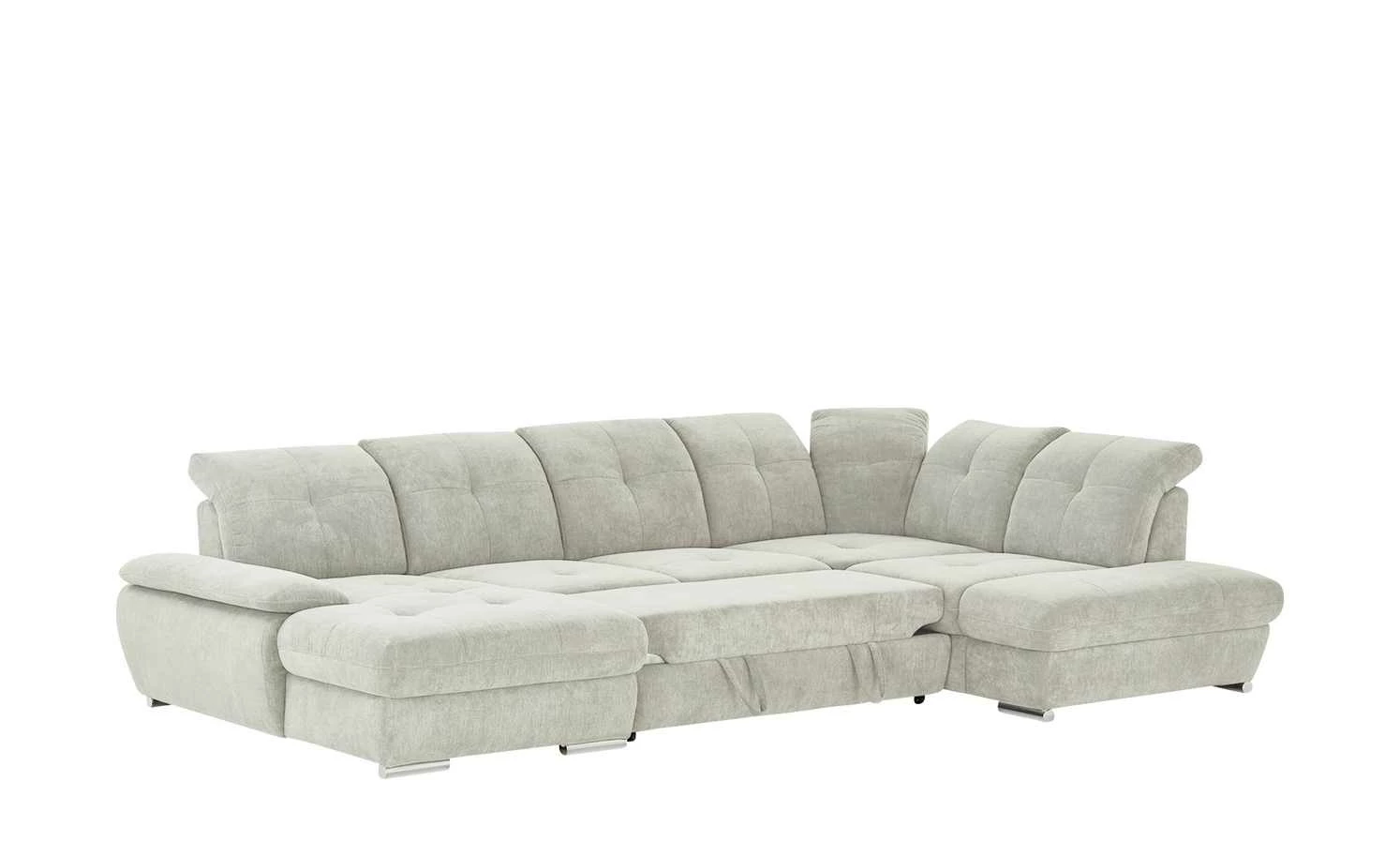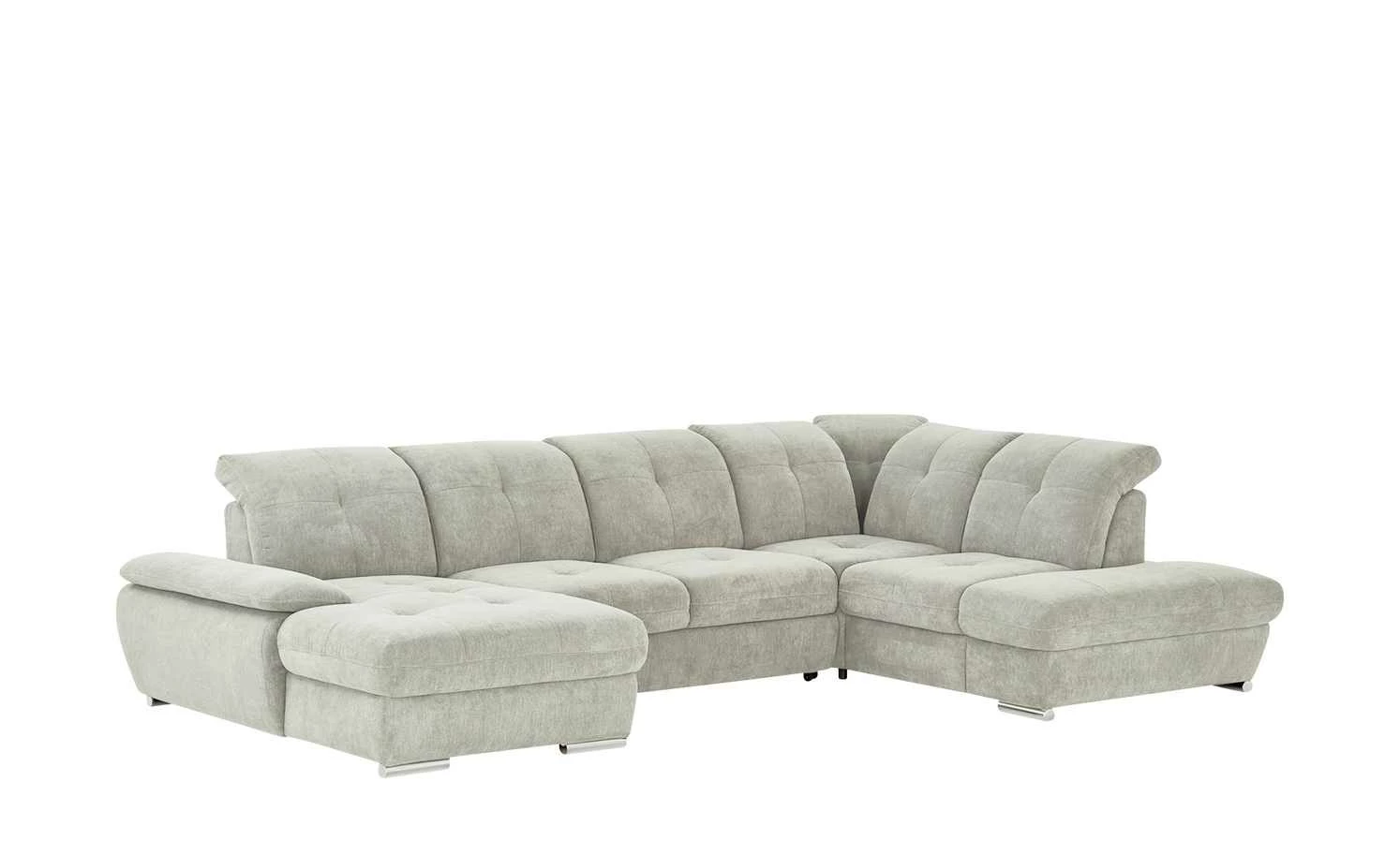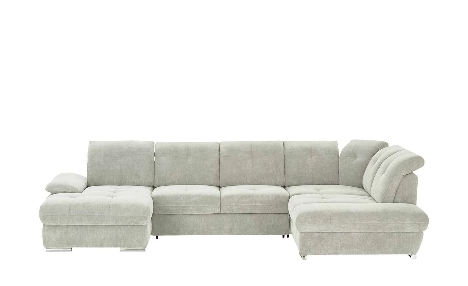 Viel Platz für Ihre Familie und Freunde bietet die Wohnlandschaft Gladys. Die Nosag-Wellenunterfederung und die formstabilen Schaumstoffpolster sorgen für langanhaltenden Sitzkomfort. Die sieben Kopfteile lassen sich einfach verstellen und ermöglichen ein entspanntes Zurücklehnen nach einem langen Tag. Auch die Sitztiefe der einzelnen Sitze und die Armlehne der Récamiere können Sie manuell Ihren Bedürfnissen anpassen. Die Wohnlandschaft besitzt eine Schlaffunktion: So können Sie bis zu zwei Gäste übernachten lassen. Bettzeug und Decken können Sie im aufklappbaren Bettkasten der Récamiere verstauen.