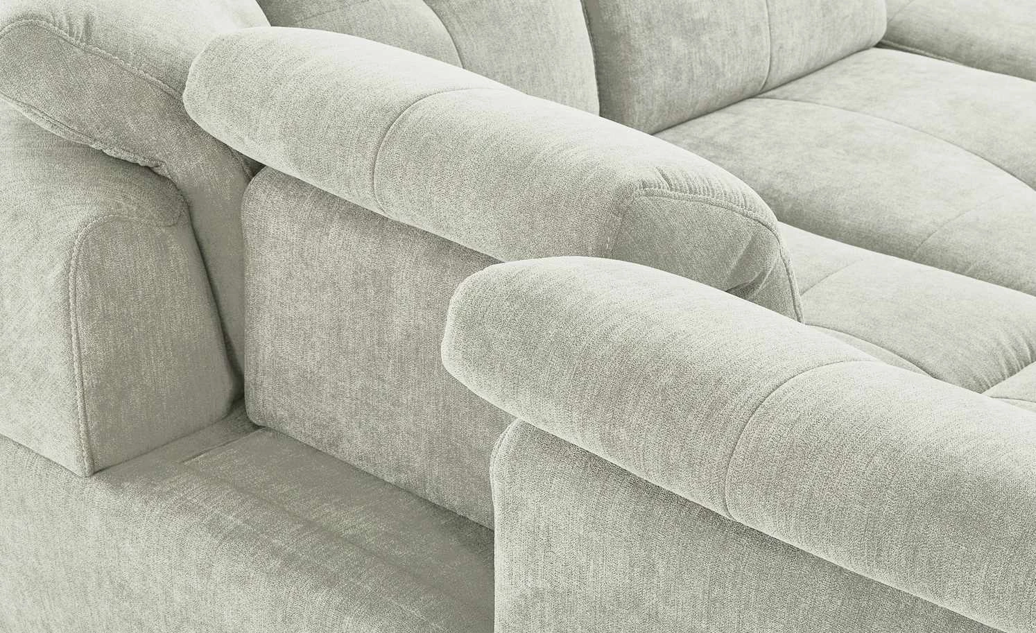 Das gesamte Sofa ist mit einem strapazierfähigen Mikrofaserstoff bezogen und kann problemlos frei im Raum stehen. Die Wohnlandschaft Gladys gibt es in vielen verschiedenen Farbvarianten und passt dadurch in nahezu jedes Raumkonzept.
